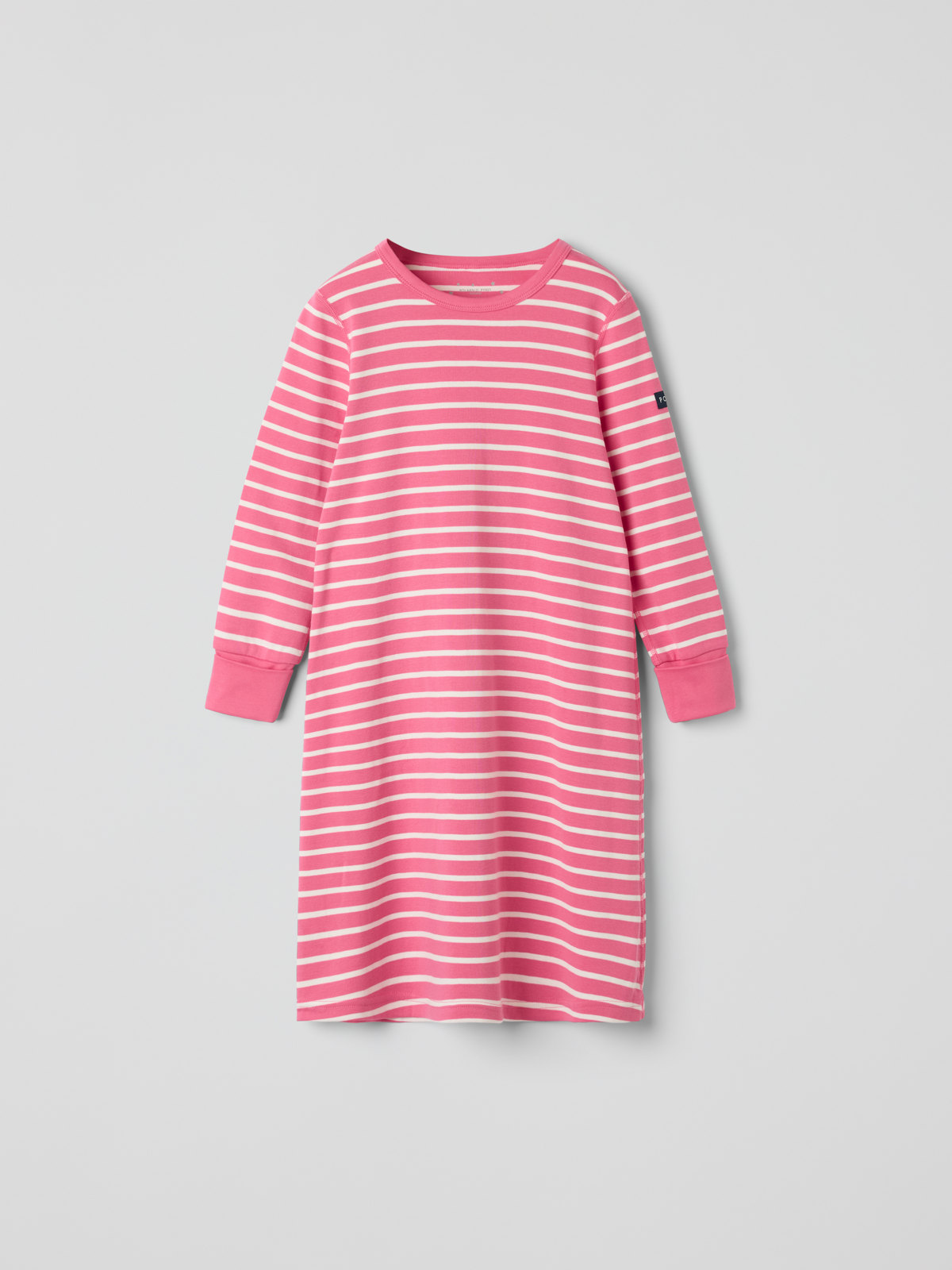 Mjukt och skönt nattlinne i 100 % ekologisk bomull, i vuxenstorlekar. Nattlinnet har vår klassiska rand och mjuk mudd vid ärmslut.