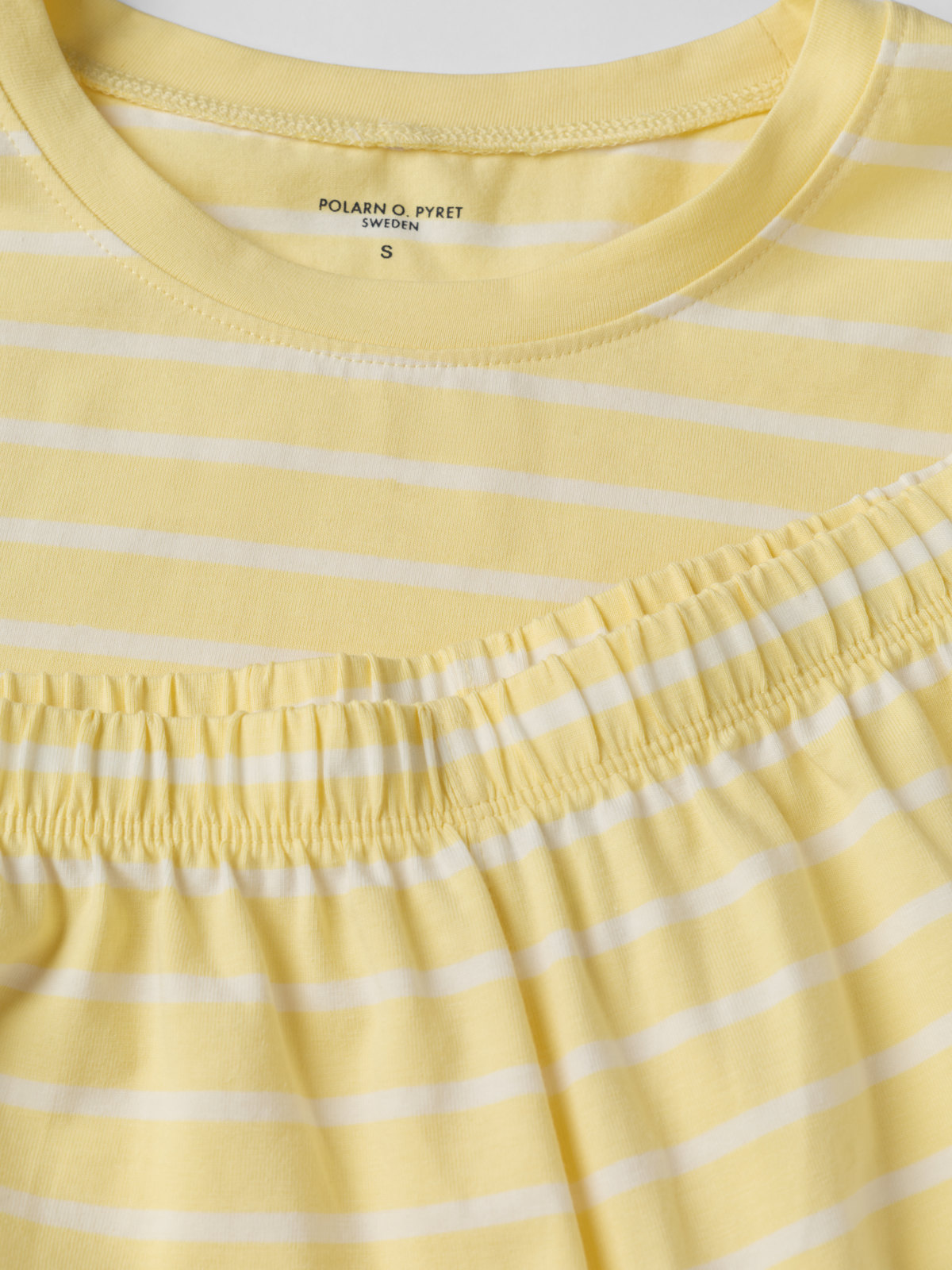 Randig kortärmad pyjamas i ekologisk bomull sydd med extra mjuka, platta sömmar för vuxen – en riktig sommarfavorit för sköna nätter!
