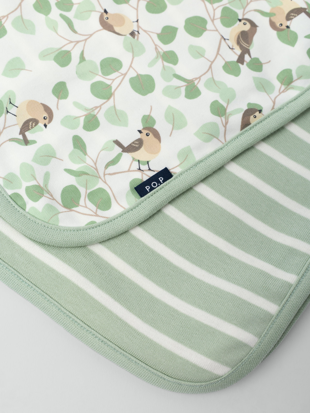 Mjuk och skön babyfilt i ekologisk bomull som är skonsam mot känslig hud – perfekt att ha i vagnen eller hemma. Filten har ett fint print på ena sidan och vår klassiska rand på den andra.