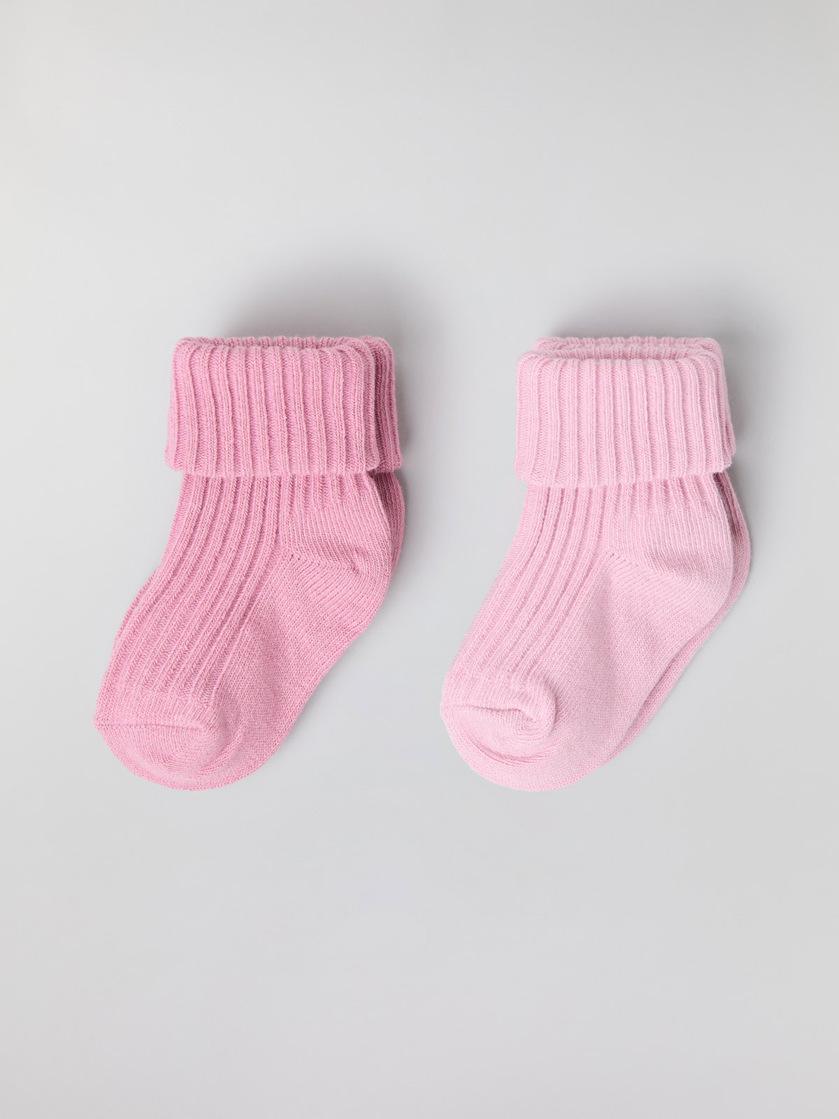Fyll på strumplådan med två par enfärgade strumpor, i mjuk ekologisk bomull för baby. Strumporna har mjuk, vikbar mudd som inte skaver.