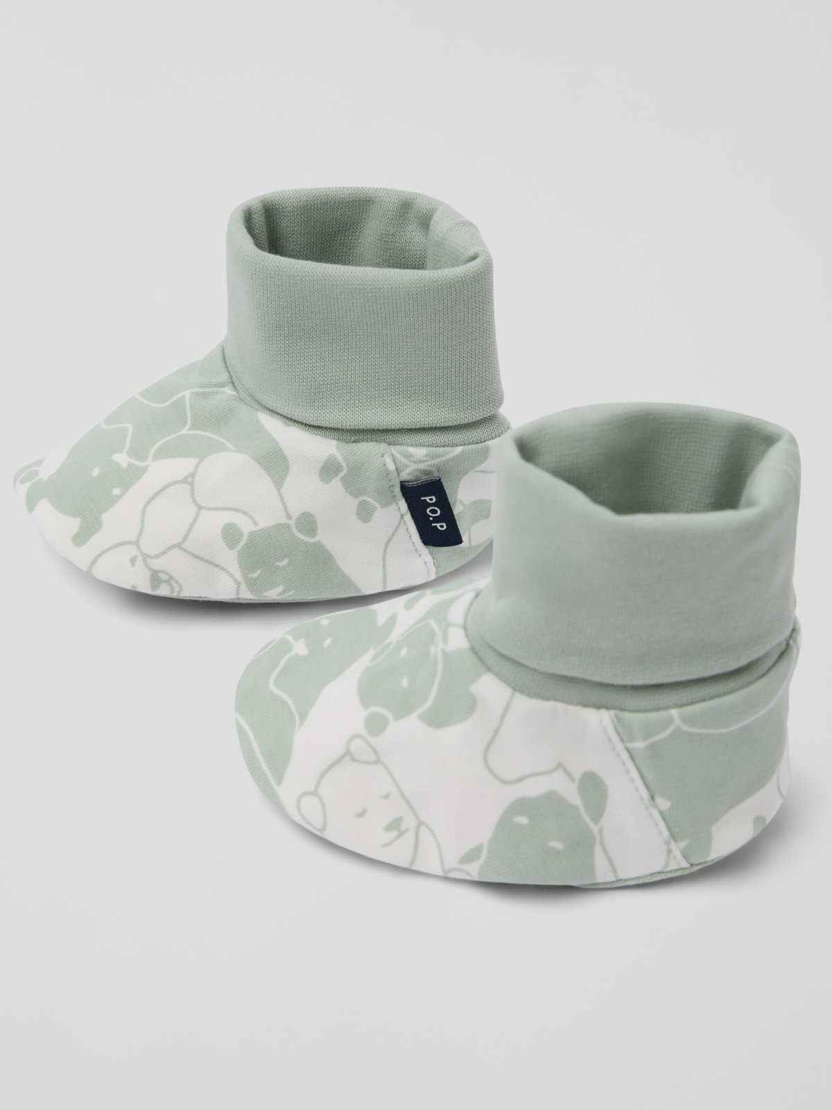 Ett par tossor i mjuk och skön bomull för de allra minsta – perfekta både i vagn och famn. Tossorna har mjuka ribbade muddar som håller dem på plats.