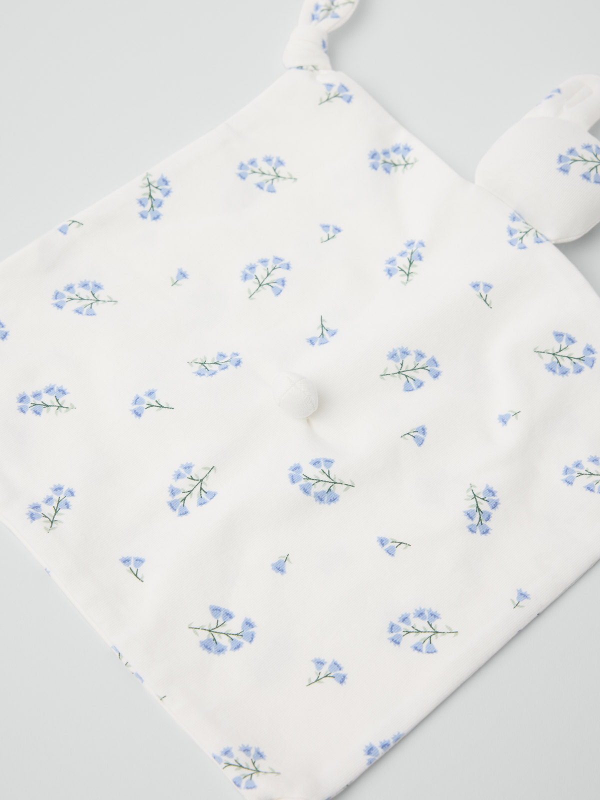 Mjuk snuttefilt i ekologisk bomull som är skonsam mot känslig hud – perfekt att ha i vagn, säng eller på resan. Snuttefilten har ett stoppat litet kaninansikte och knutna hörn.
