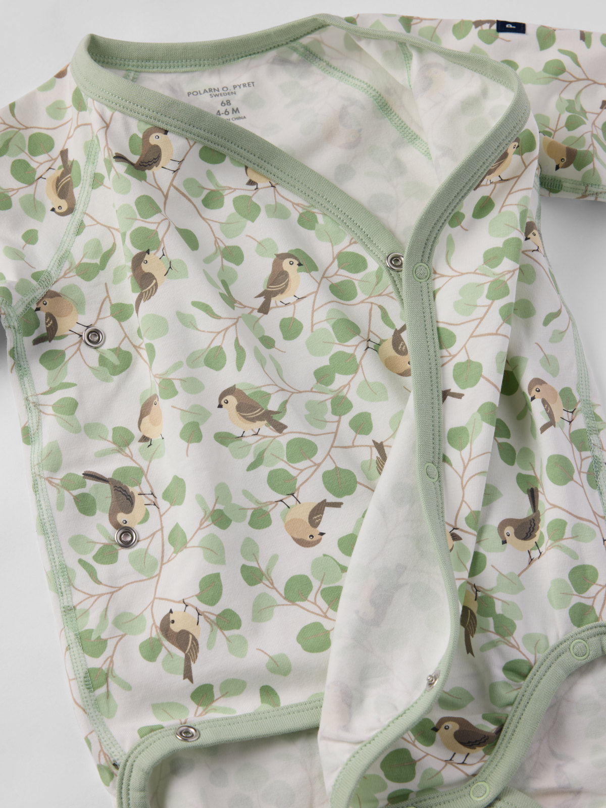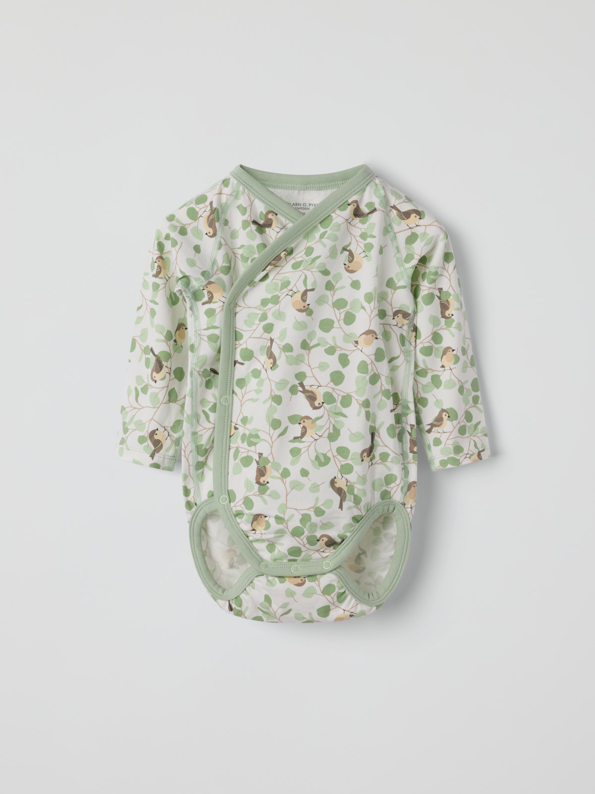 Omlottbody i ekologisk bomull för baby. Bodyn är sydd med extra mjuka sömmar som inte skaver mot känslig hud. Tryckknapparna längs omlottöppningen underlättar klädbyten.