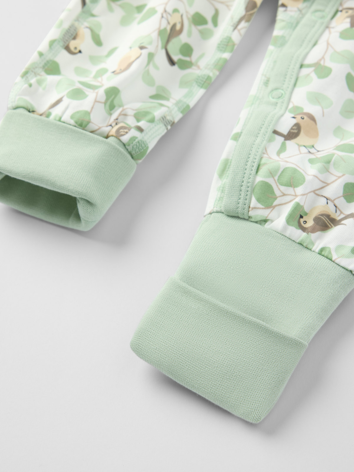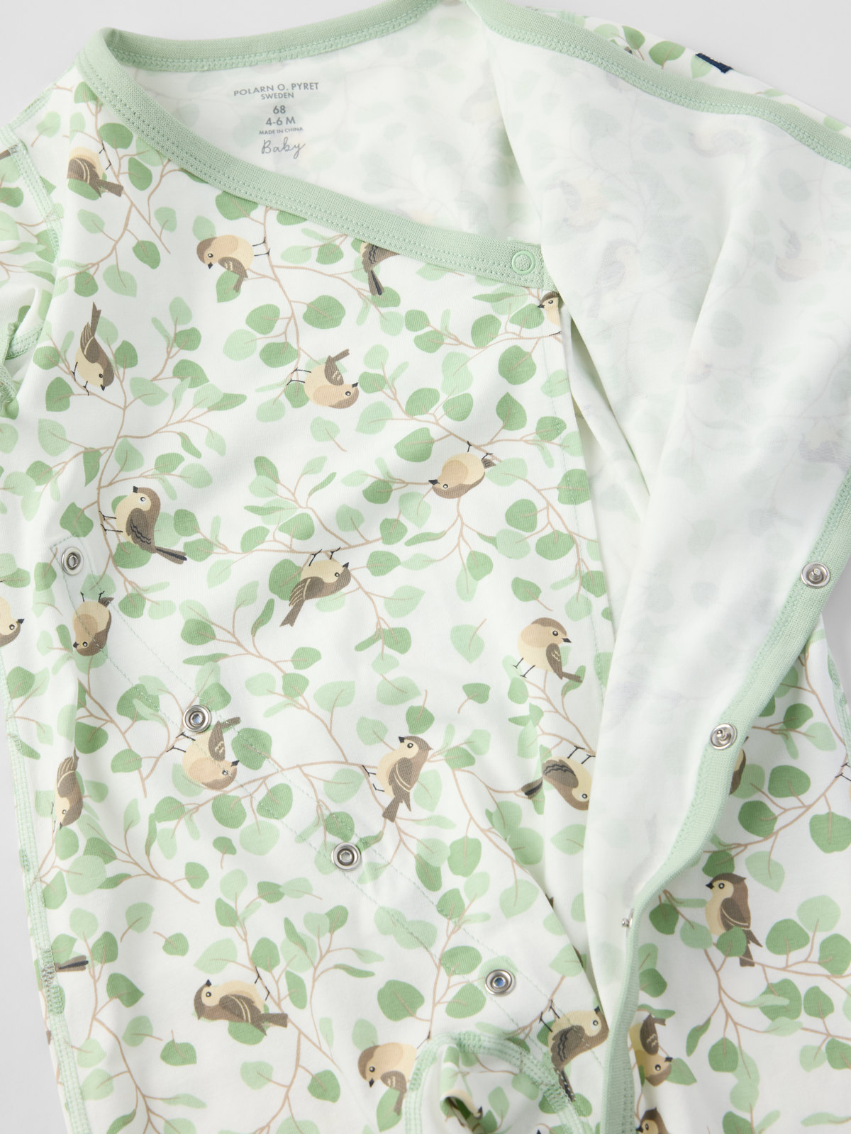 Mjuk och skön omlottoverall i ekologisk bomull – perfekt för myset! Overallen är sydd med extra mjuka, platta sömmar som är skonsamma mot känslig hud. Muddarna i ärm- och benslut är nedvikbara. I ärmsluten finns också övervikbart tyg som skyddar små händer från kyla och riv. Under ärmen har overallen ett fint band som går att knyta i en rosett.