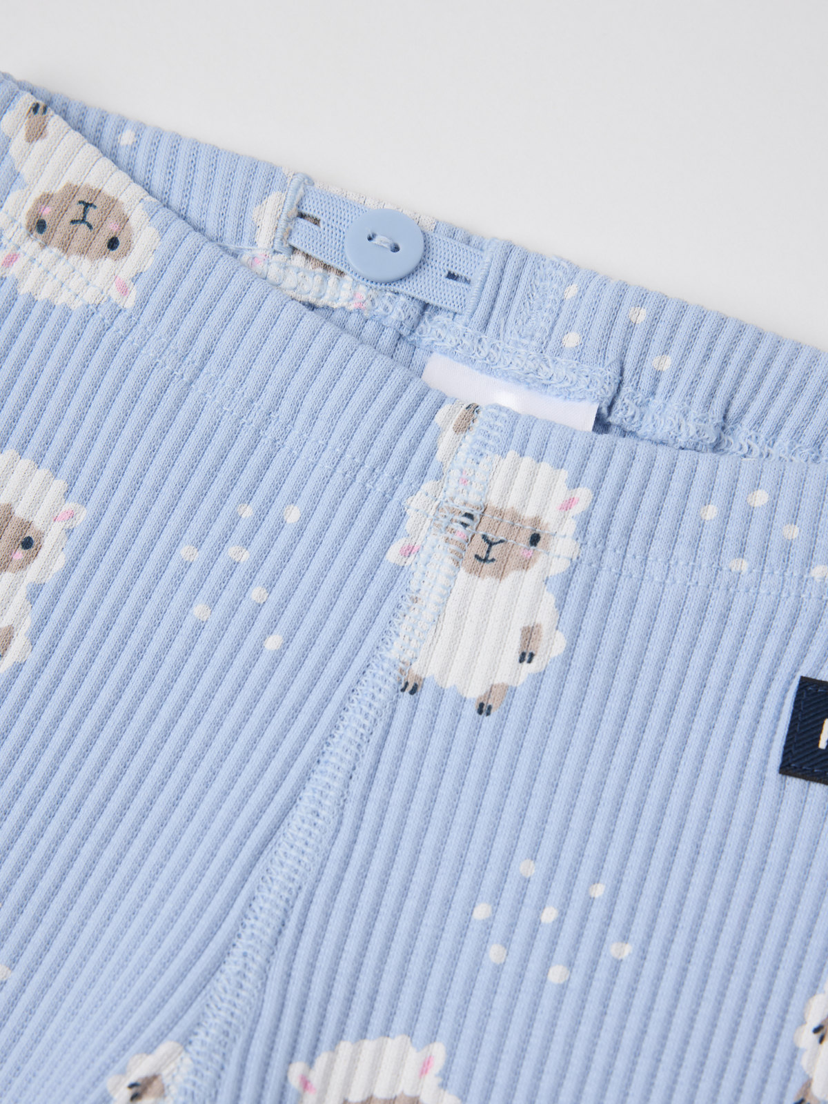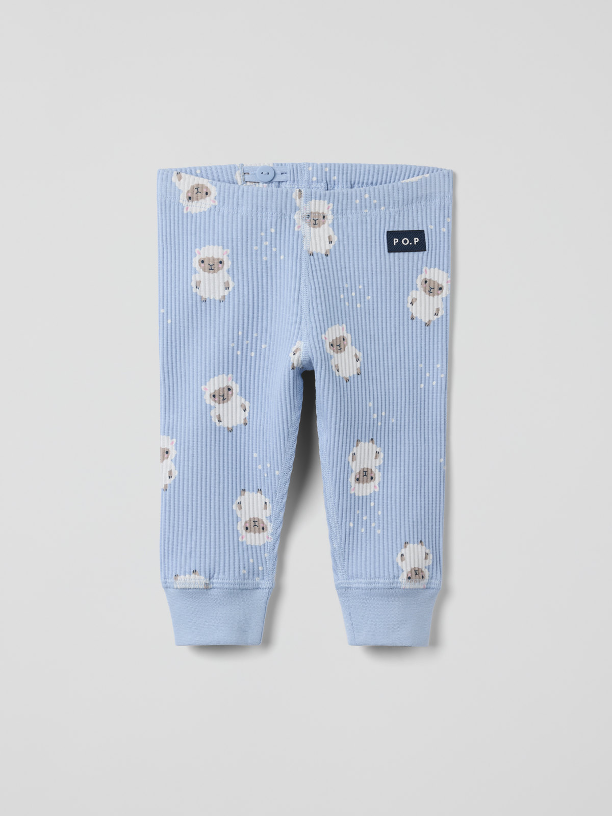 Ribbad byxa i mjuk ekologisk bomull för baby. Byxan är sydd med extra mjuka, platta sömmar som inte skaver mot känslig hud och har mjuka muddar i benslut och justerbar midja med knapphålsresår.
