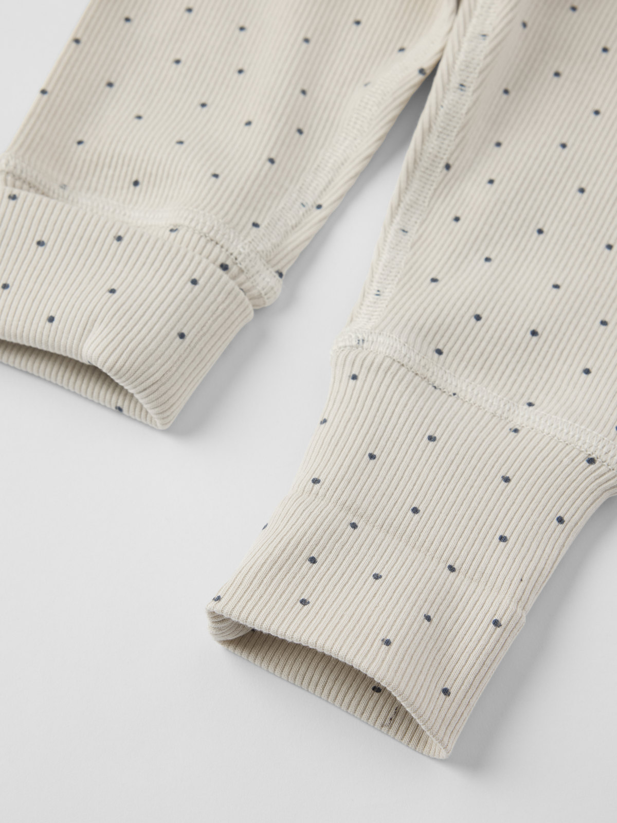 Ribbad byxa i mjuk mix av Tencel™ lyocell och ekologisk bomull. Materialmixen är sval, skön och skonsam mot känslig hud. Byxan har långa nedvikbara muddar i benslut för skön passform. Midjan kan justeras med knapphålsresår.