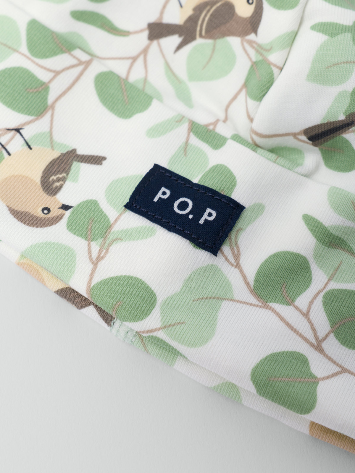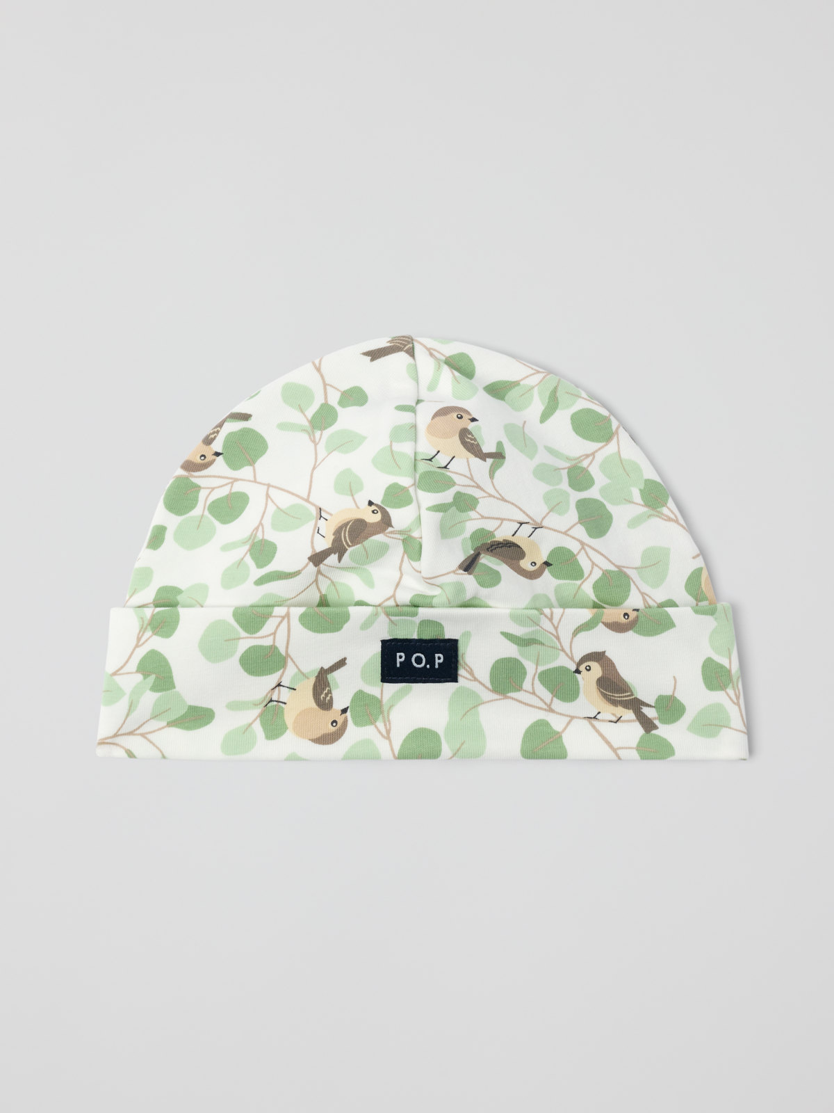 Supermjuk mössa för baby i ekologisk bomullstrikå. Mössan är sydd med extra mjuka sömmar som är skonsamma mot känslig hud.