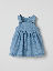 Hängselklänning i tunn chambray av 100% ekologisk bomull – fin till både vardag och fest! Klänningen har tunna hängslen som stängs med knapp fram, markerad midja och rynkad kjoldel.