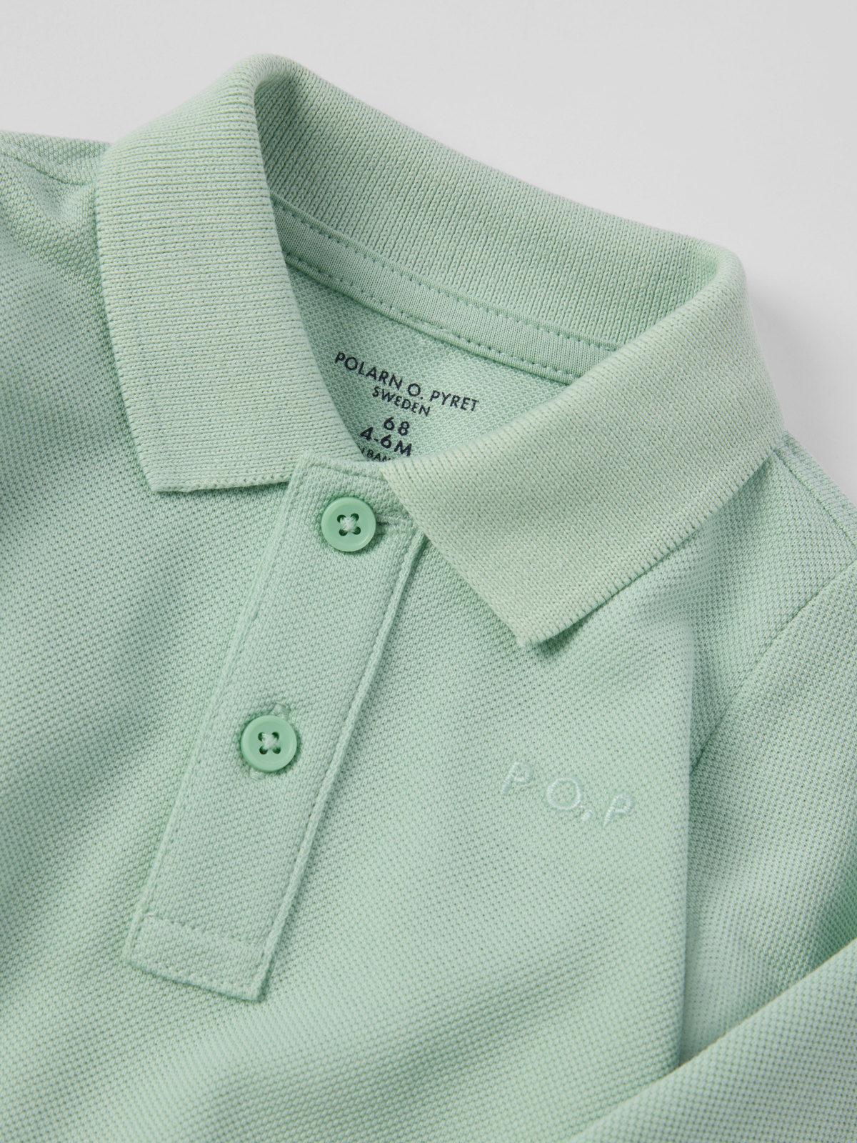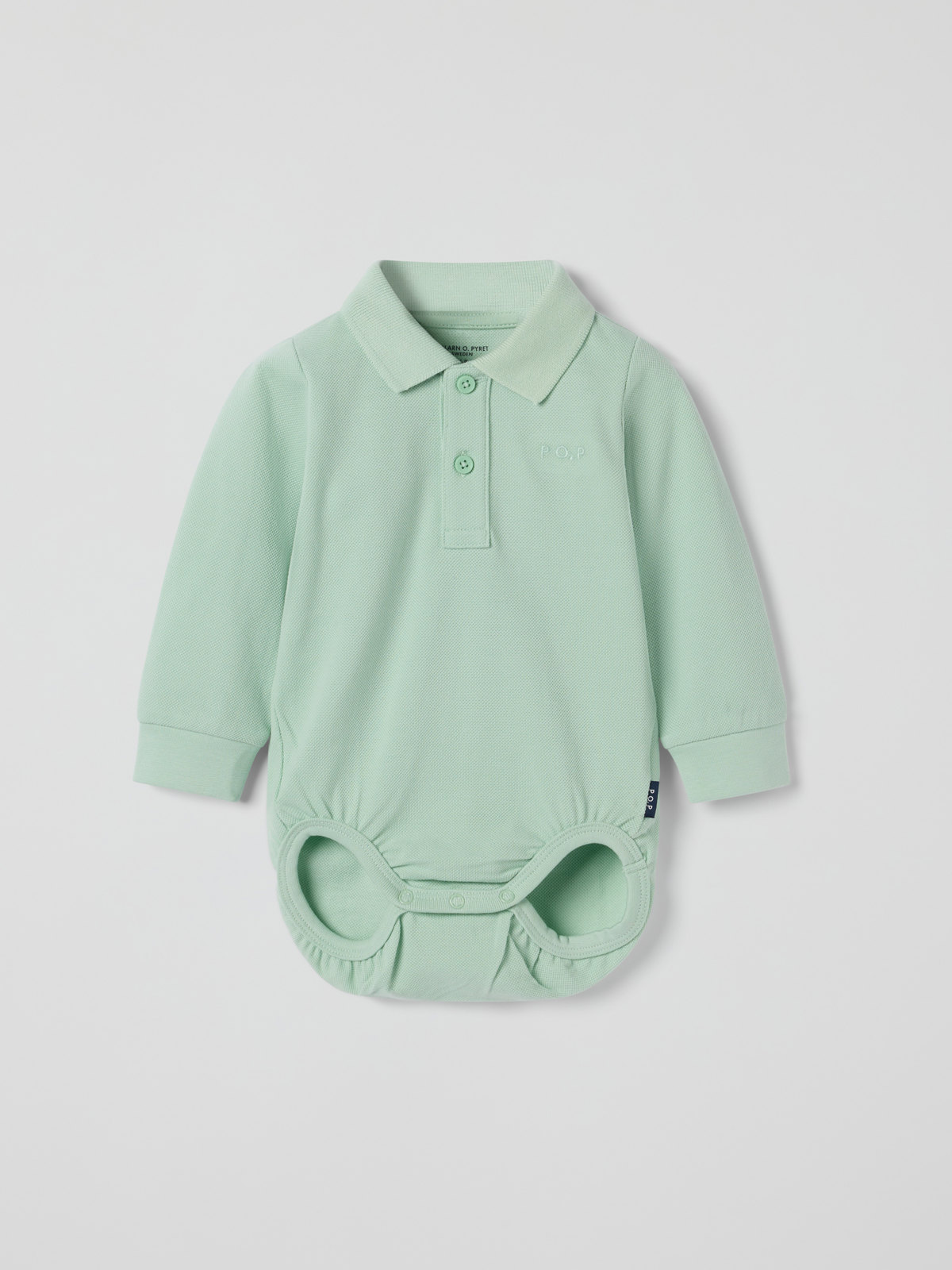 Pikébody i ekologisk bomull med krage och knappslå – ett fint basplagg för alla tillfällen! Bodyn har ribbad mudd i ärmslut för skön passform. Tryckknapparna i grenen underlättar blöjbyten.