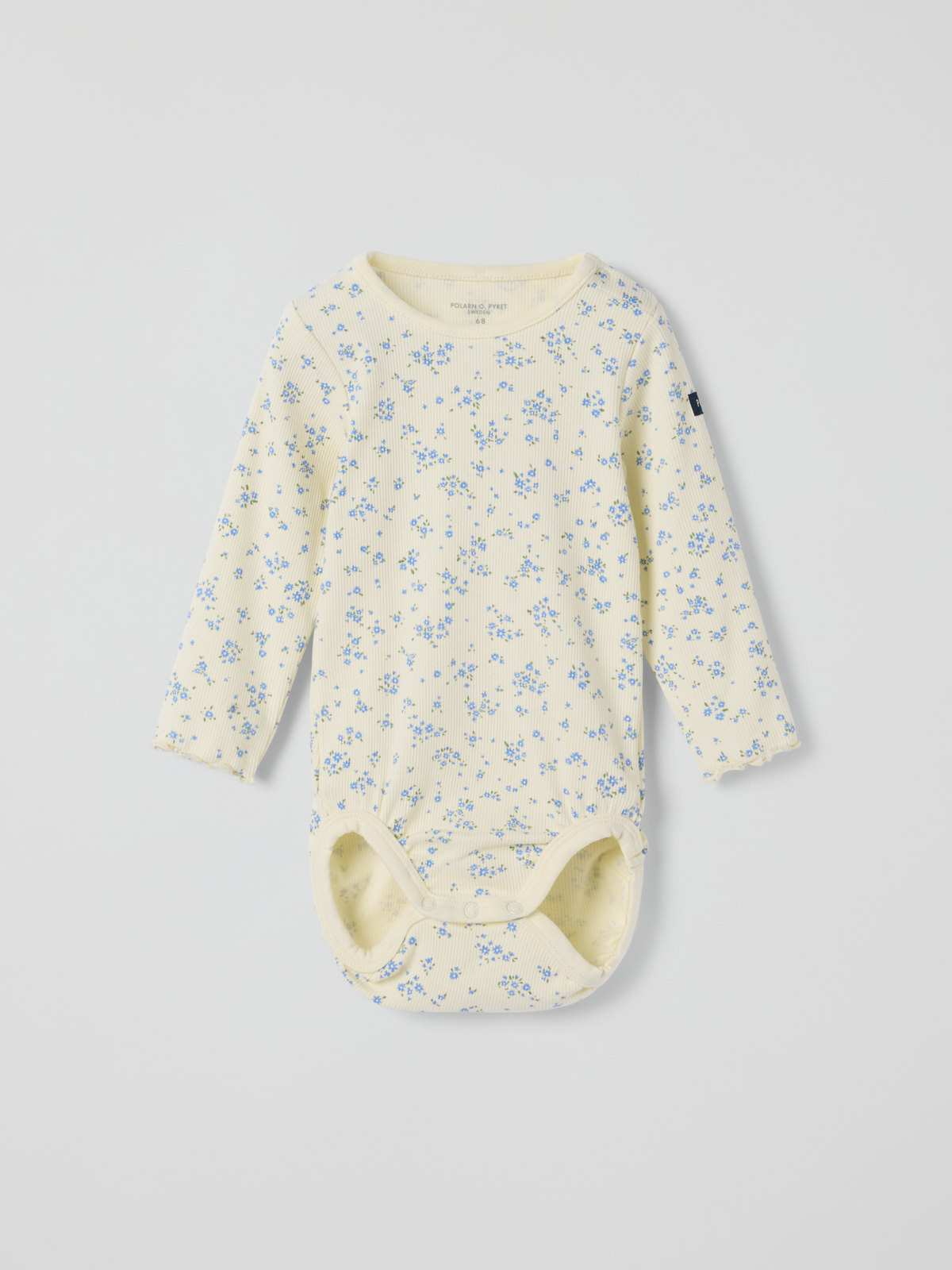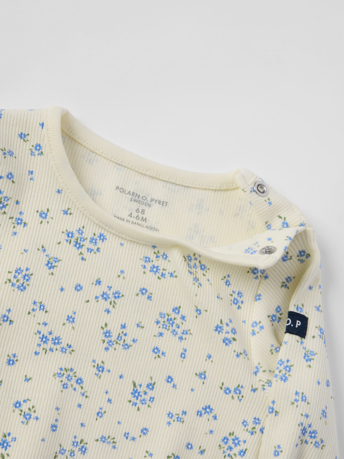 Ribbad body i tunn och sval trikå av ekologisk bomull och Tencel™ lyocell som är mjuk mot känslig hud. Tryckknapparna på ena axeln och i grenen underlättar kläd- och blöjbyten.
