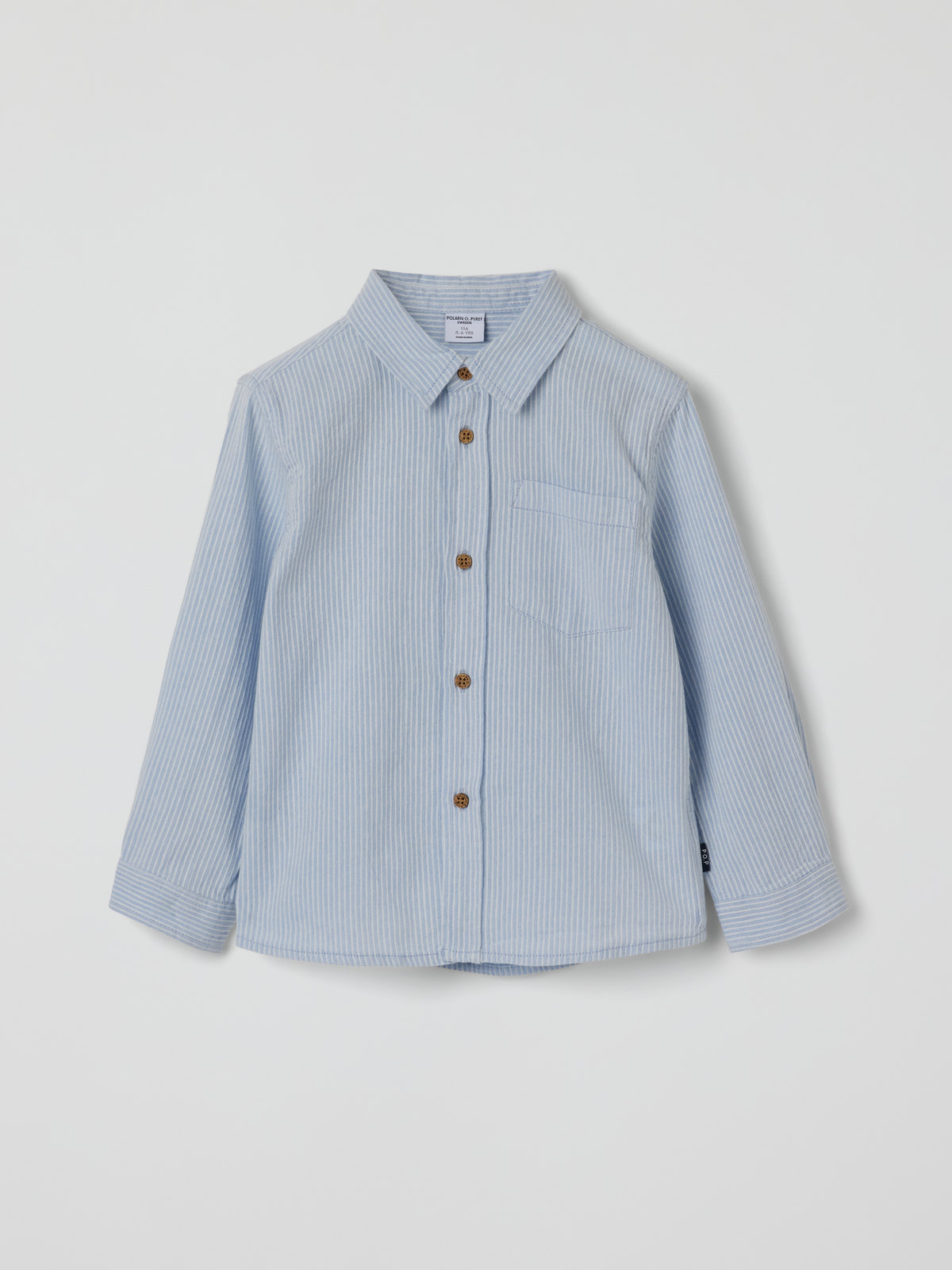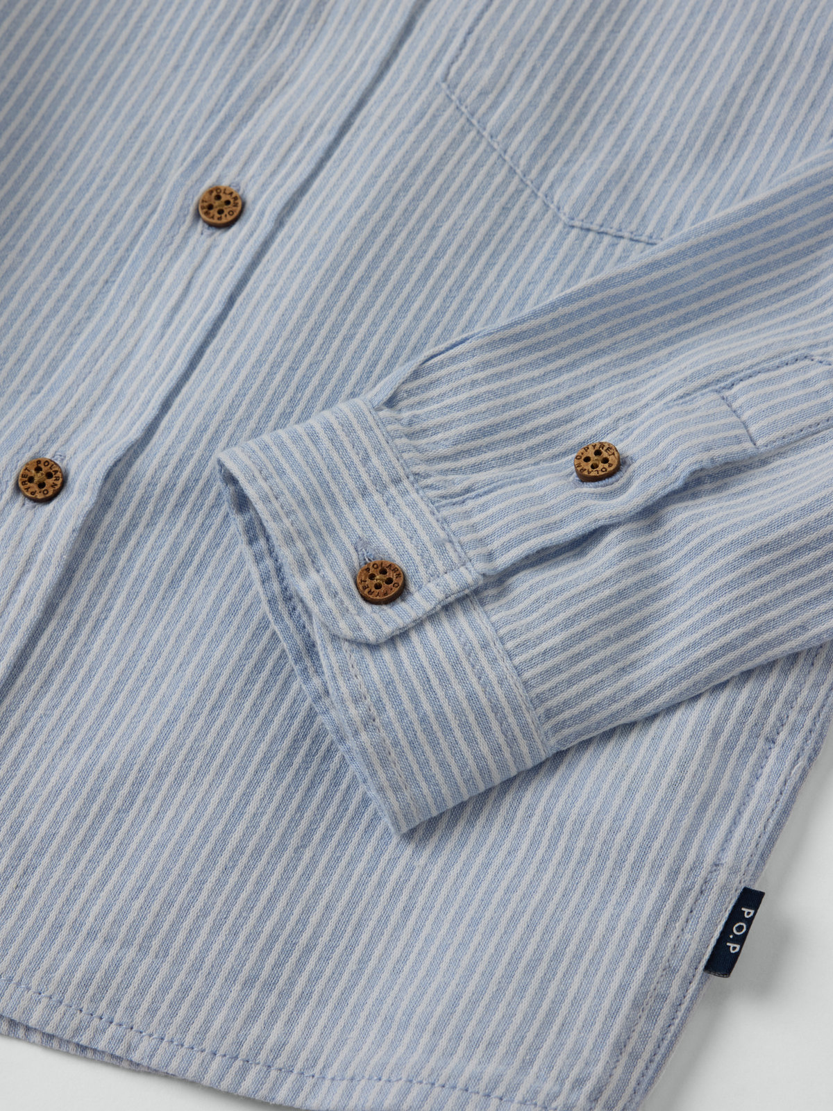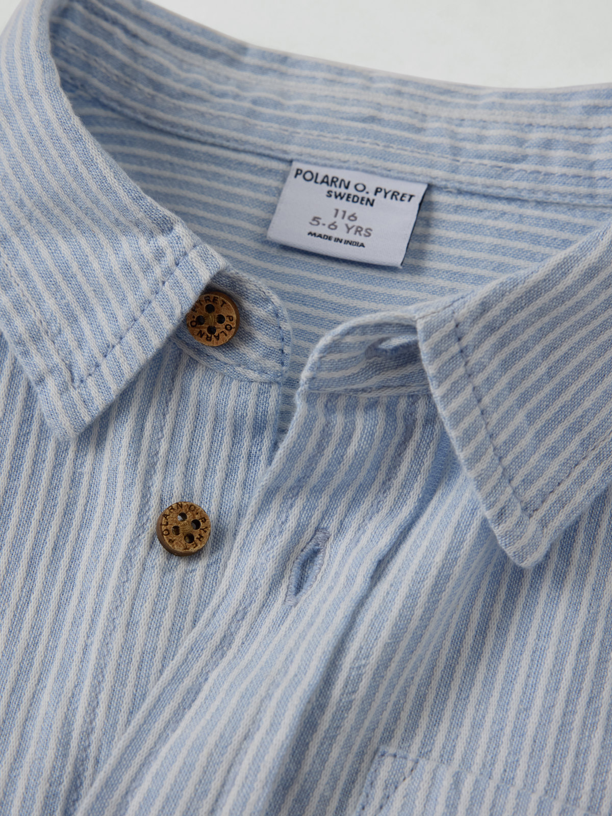 NYHET! Smalrandig skjorta i vävd ekologisk bomull – en tunn och sval favorit till vardag och fest! Skjortan har lite rymligare modell än vår klassiska Oxfordskjorta samt ficka på böstet.