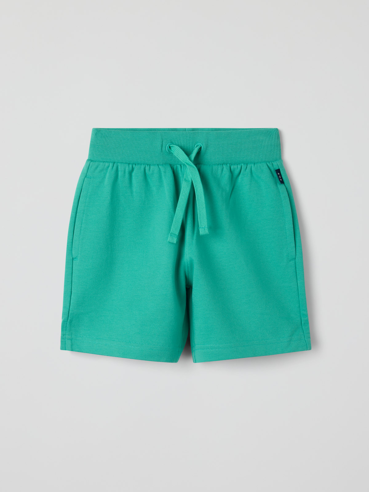 Enfärgade shorts i ekologisk bomul med mjuk sweatshirtkvalitet och borstad insida – ett måste i sommargarderoben! Midjan är elastisk och justeras med knytband.