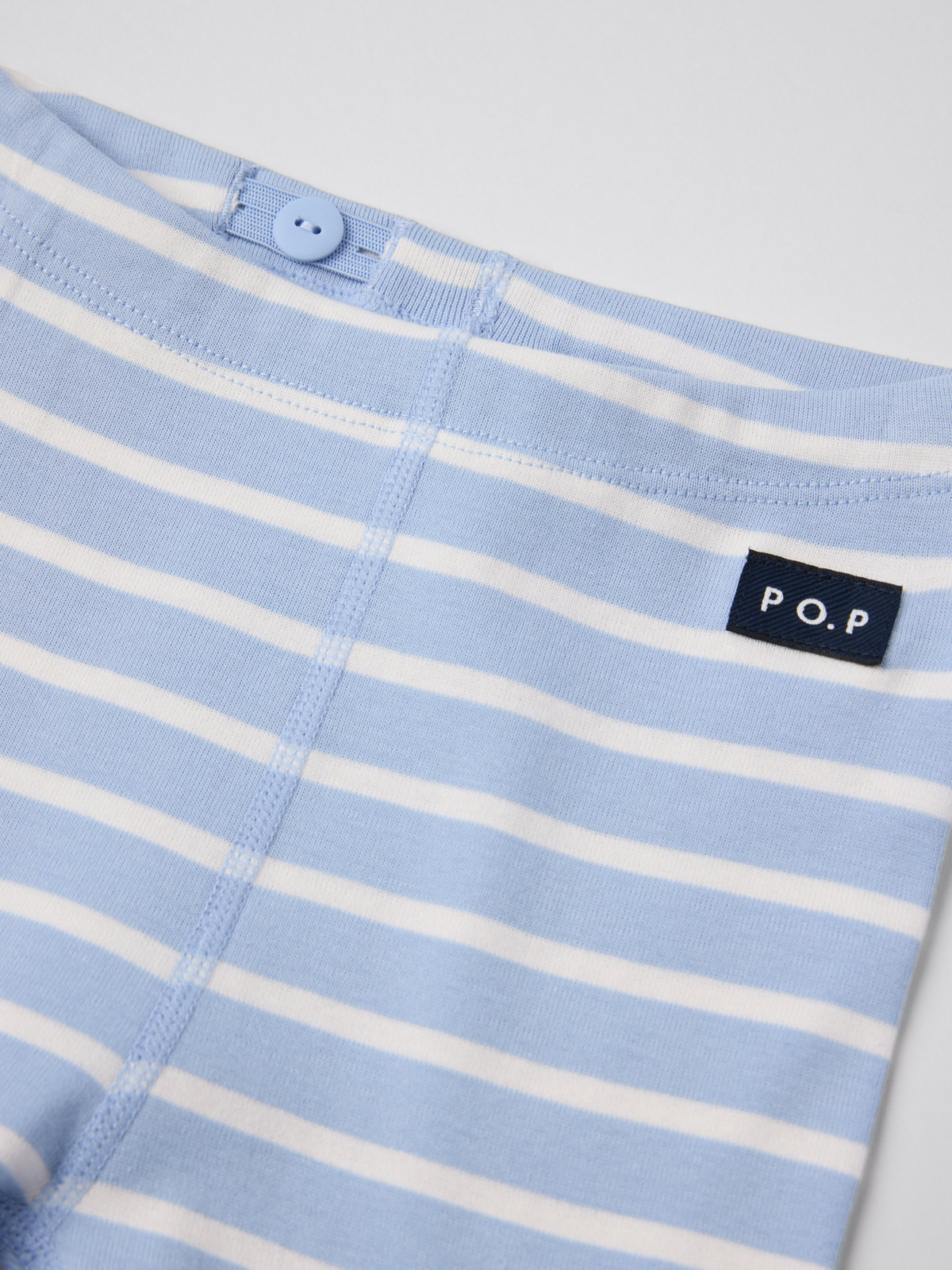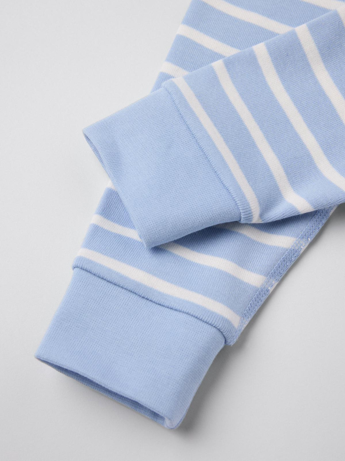 Ribbad trikåbyxa i mjuk ekologisk bomull. Ett perfekt basplagg som passar både hemma och på förskolan! Byxan har vår klassiska rand och elastisk midja som går att justera med knapphålsresår. Den har även mjuk mudd vid bensluten.