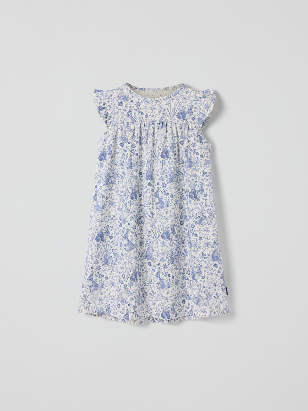 Nattlinne i mjuk ekologisk bomull sytt med extra mjuka, platta sömmar som är skonsamma mot känslig hud. Nattlinnet har söta volanger över axlarna.