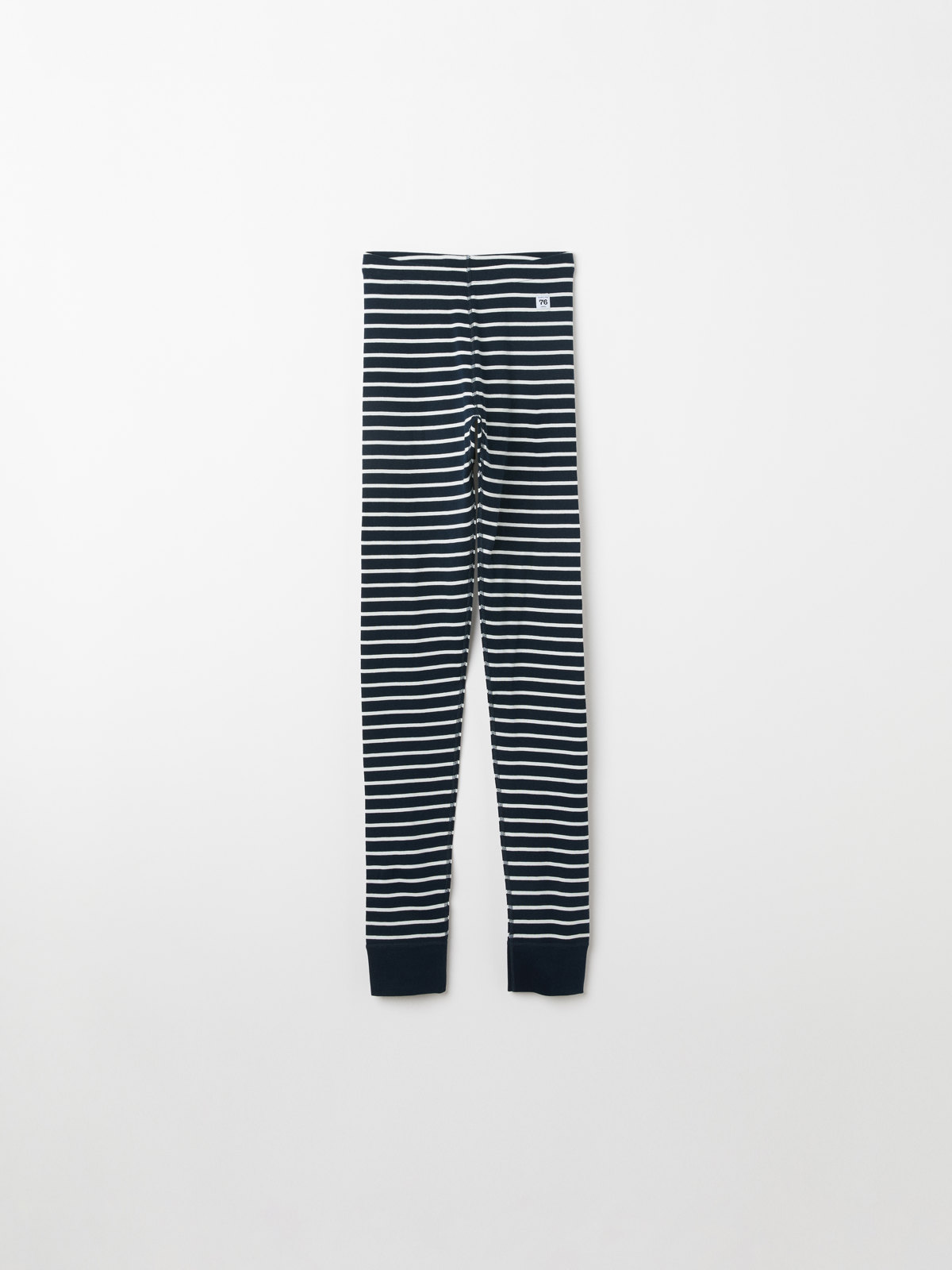 Randig byxa i mjuk ekologisk bomull, i vuxen storlekar. Byxan är sydd med extra mjuka sömmar och har vår klassiska rand, samt elastisk midja.