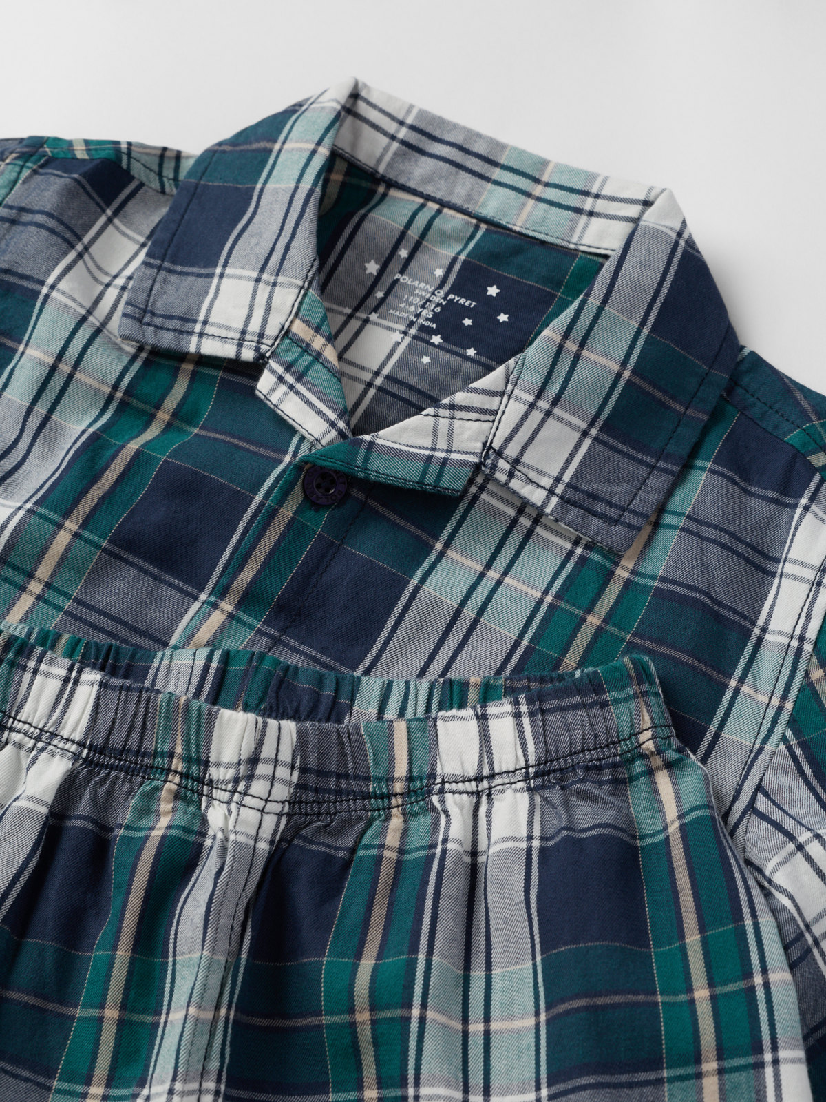Rutig tvådelad pyjamas med klassisk skjorta och byxa i rak modell – matcha hela familjen! Pyjamasen är tillverkad i lätt borstad bomull och har elastisk midja.