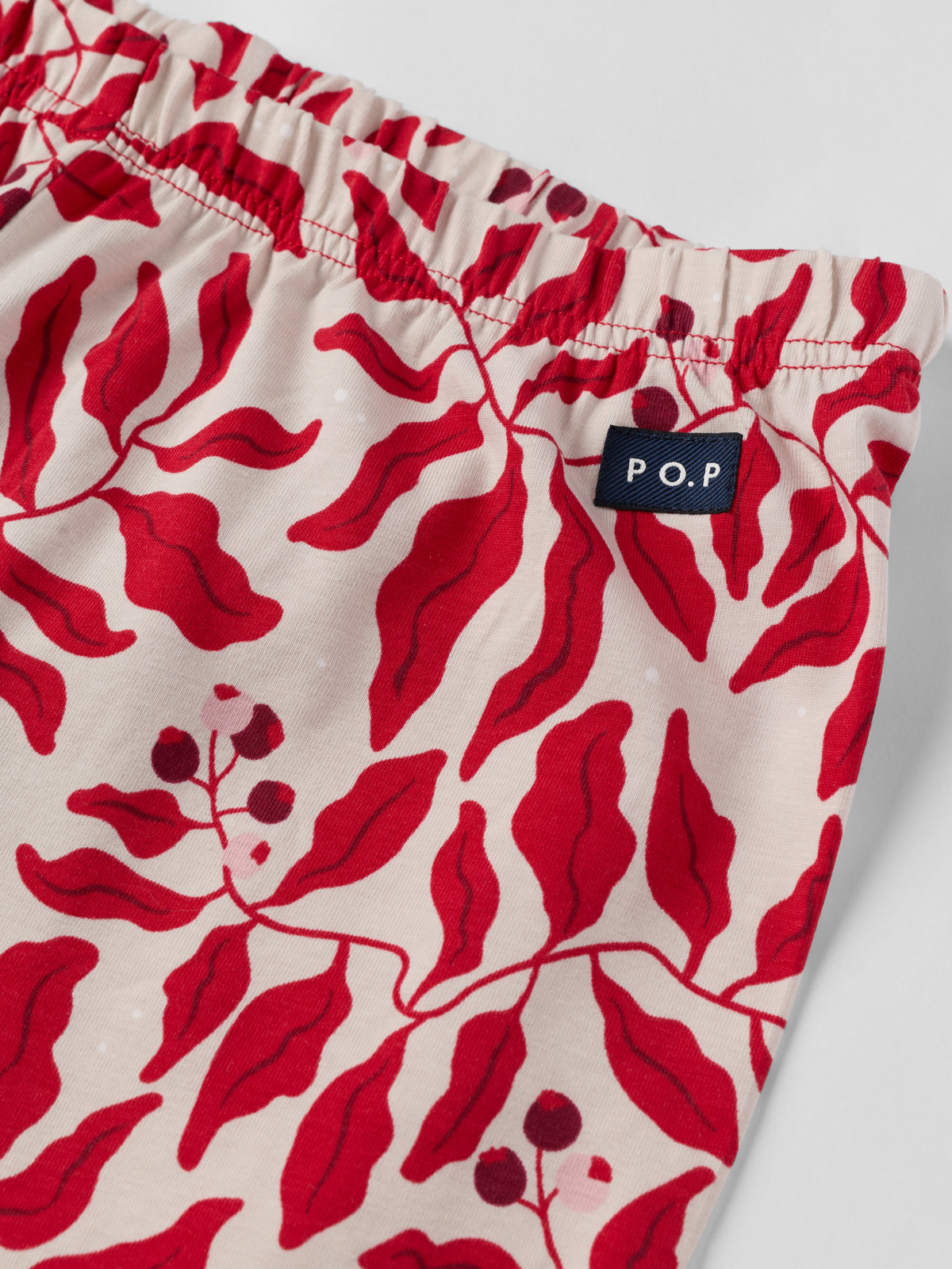 Tvådelad pyjamas i mjuk ekologisk bomull för vuxen. Pyjamasen är sydd med extra mjuka, platta sömmar som är skonsamma mot känslig hud. Både byxan och tröjan är raka i modellen vilket ger en luftig och bekväm passform.