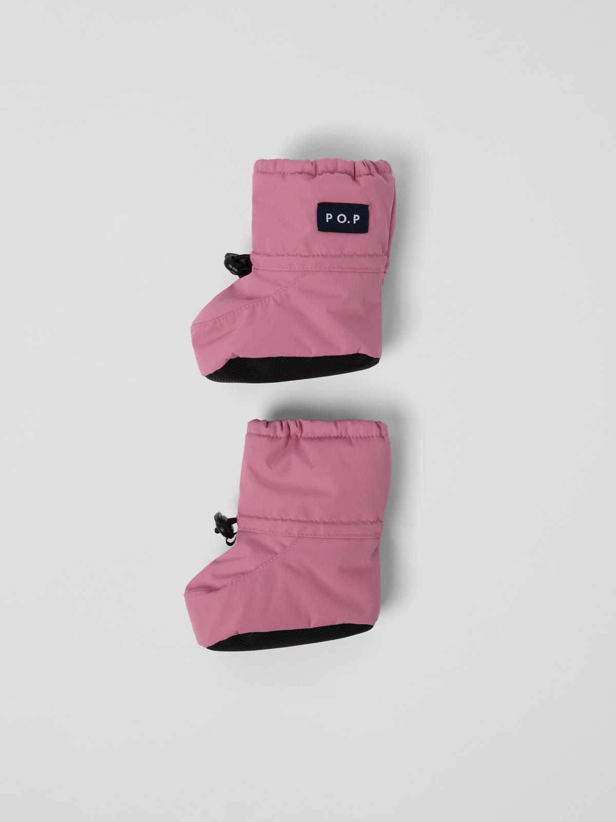 Håll små fötter varma i de här skyddande och smarta tossorna för baby. Perfekta i vagnen eller i bärselen! Tossorna är tillverkade i vind- och vattentätt skalmaterial och har skönt fleecefoder i återvunnen polyester. Sulan är förstärkt för extra skydd och stabilitet. Dragskon runt ankeln gör att de sitter på bra och går att reglera efter barnets fot.