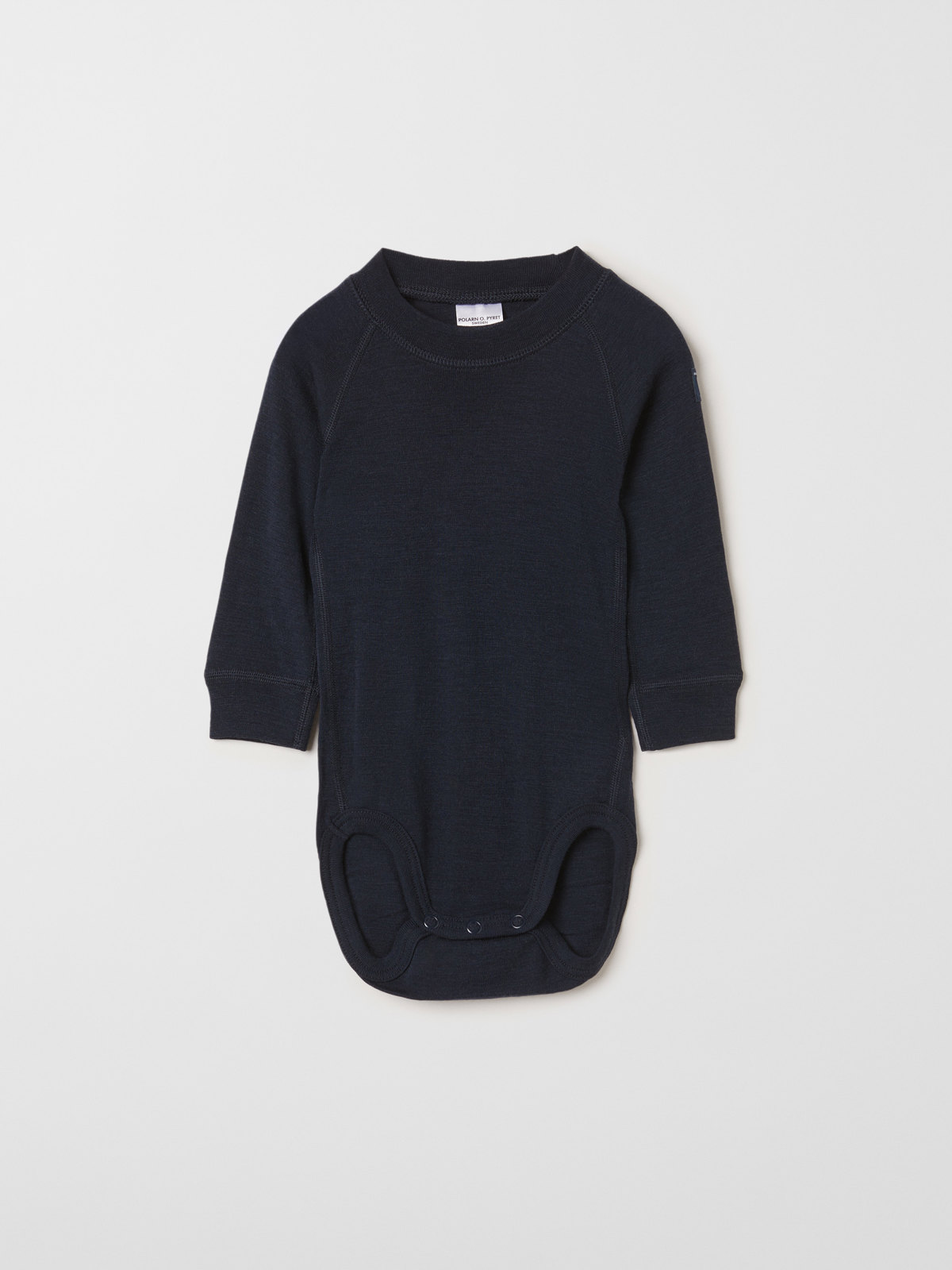 Långärmad body i värmande merinoull för baby. Ett perfekt förstalager under vinteroverallen!