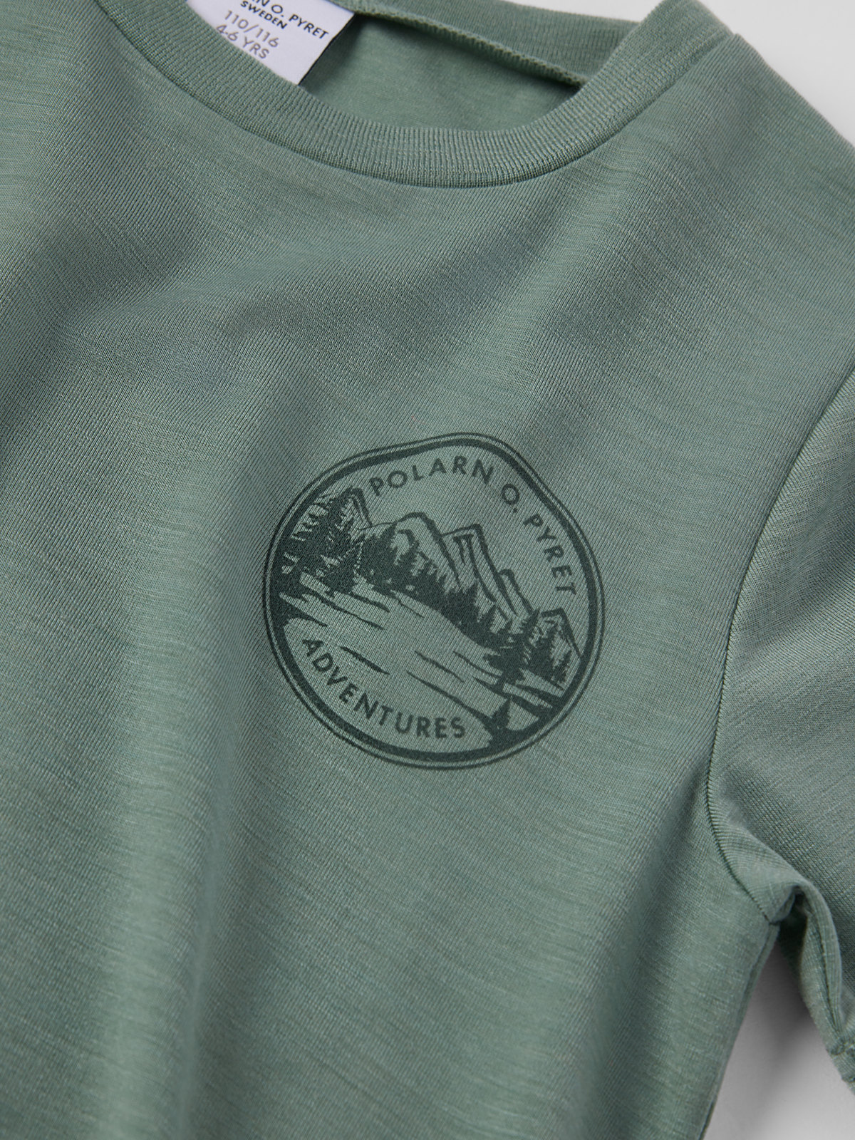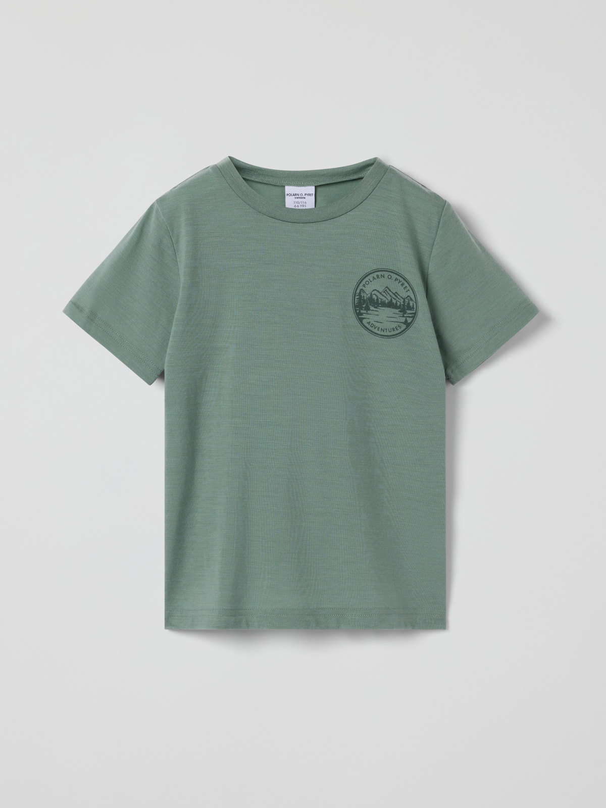 T-shirt i mjuk och skön mix av ull och återvunnen polyester – perfekt för äventyren! Ullen hjälper till att reglera kroppstemperaturen och värmer även om den blir blöt och polyestern transporterar bort fukt från kroppen.