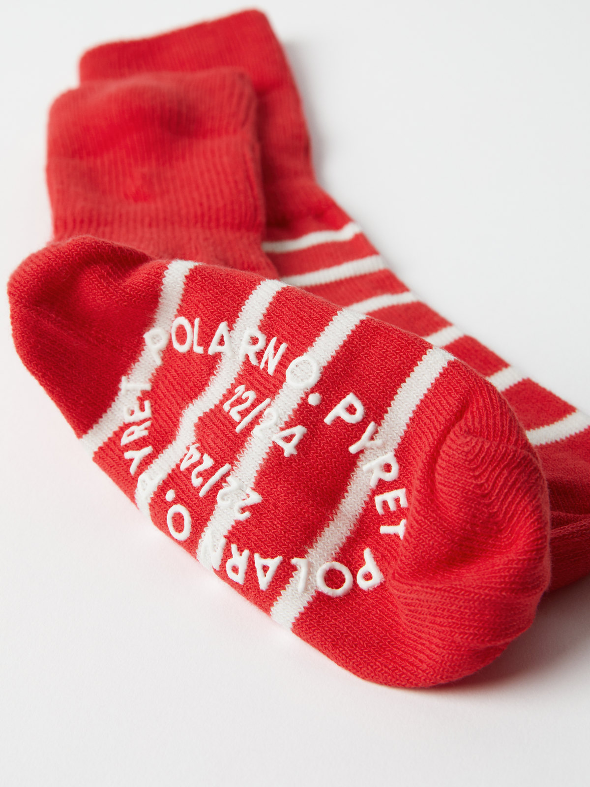 Tvåpack strumpor med halkskydd. Strumporna är tillverkade i mjuk ekologisk bomull och har vår klassiska rand. Mudden kan vikas upp eller ned. Den här produkten ingår i vårt 3 för 2-erbjudande, som ej kan kombineras med andra erbjudanden.