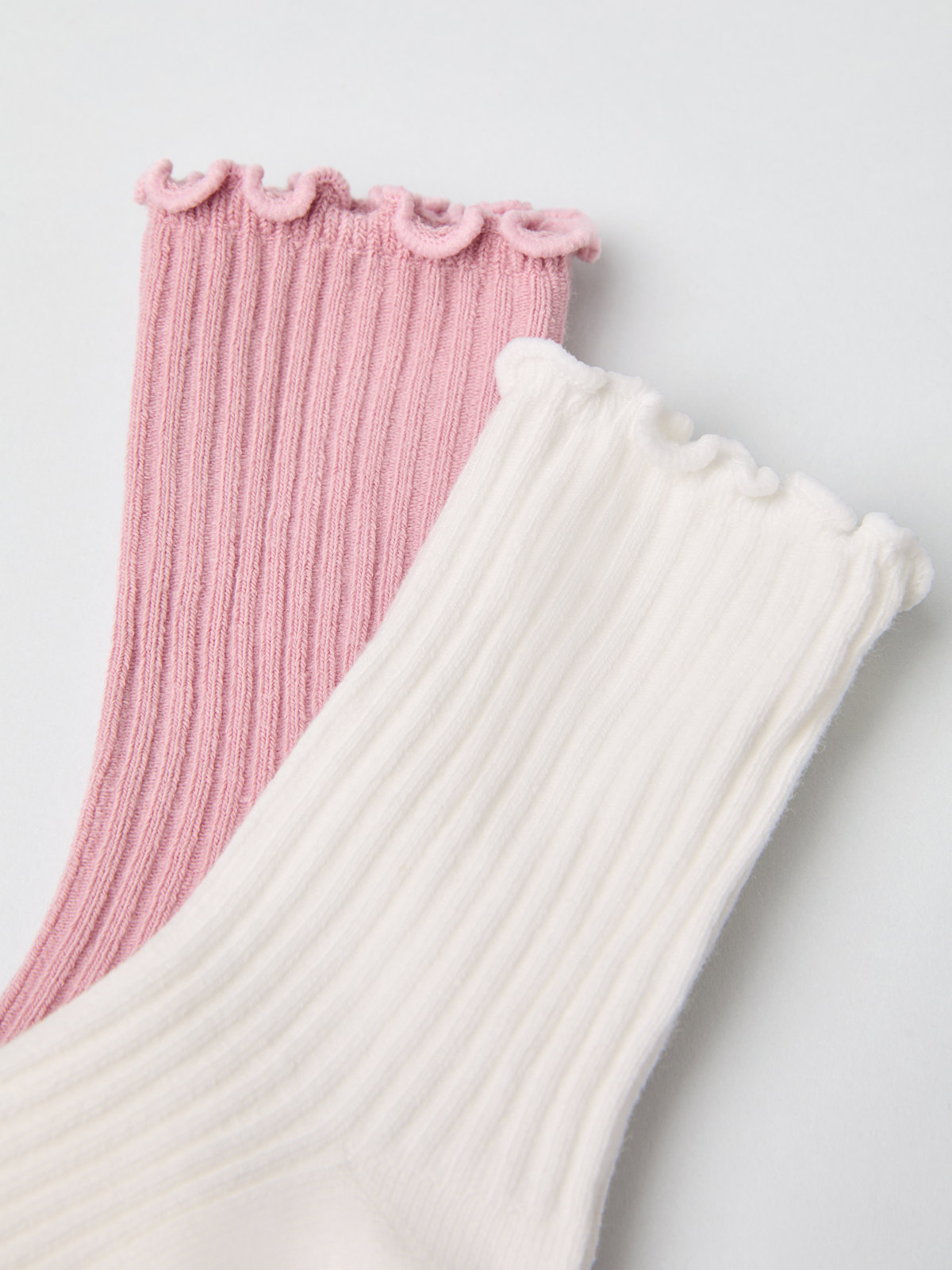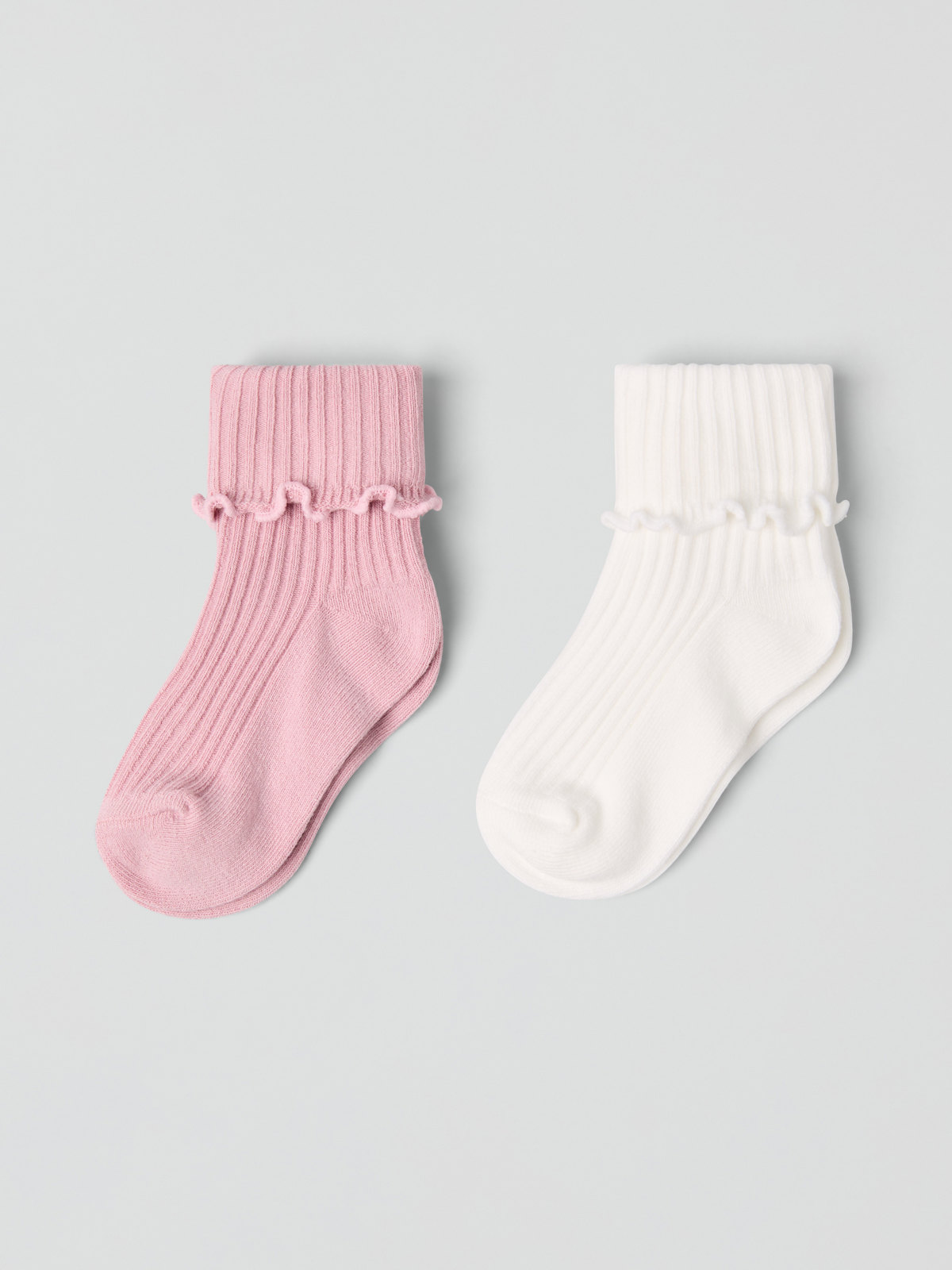 2-pack strumpor i mjuk ekologisk bomull och fin uddkant för baby. Strumporna har lång vikbar mudd för skön passform och matchar snyggt med hela babykollektionen.
