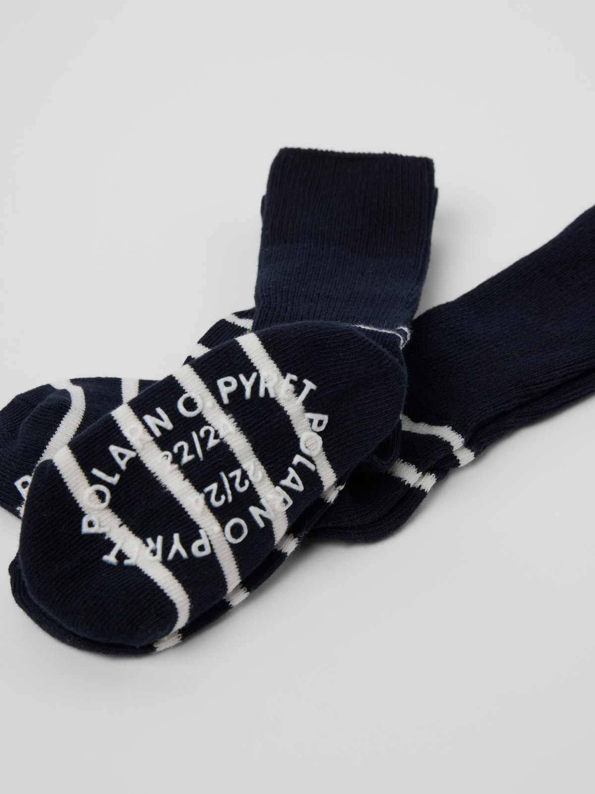 Tvåpack strumpor med halkskydd. Strumporna är tillverkade i mjuk ekologisk bomull och har vår klassiska rand. Mudden kan vikas upp eller ned. Den här produkten ingår i vårt 3 för 2-erbjudande, som ej kan kombineras med andra erbjudanden.