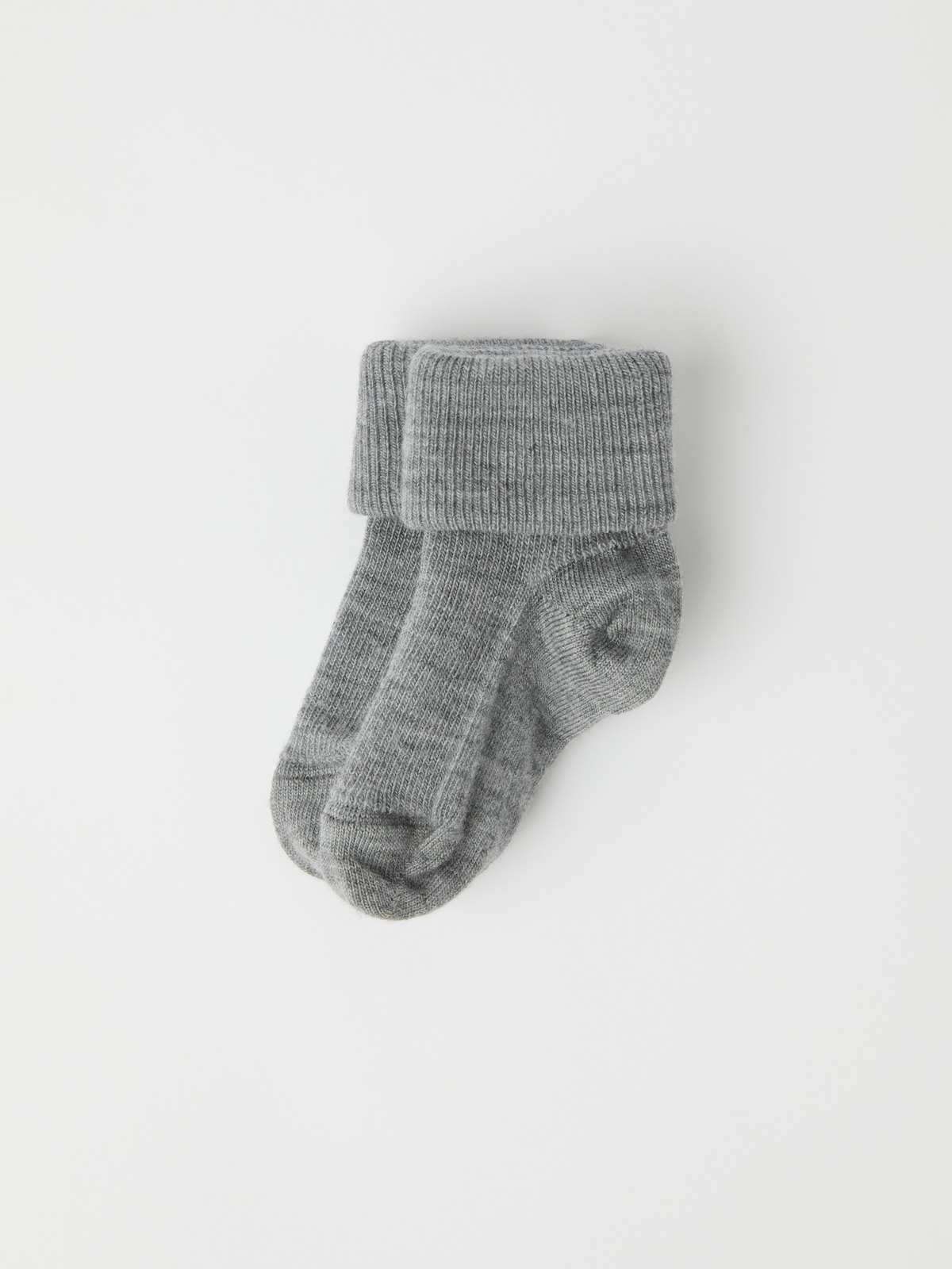 Ett par enfärgade, mjuka strumpor i tunn merinoull som värmer gott i kylan. Strumporna har en mudd som kan vikas upp eller ned, och gör att de sitter kvar även på de minsta fötterna.