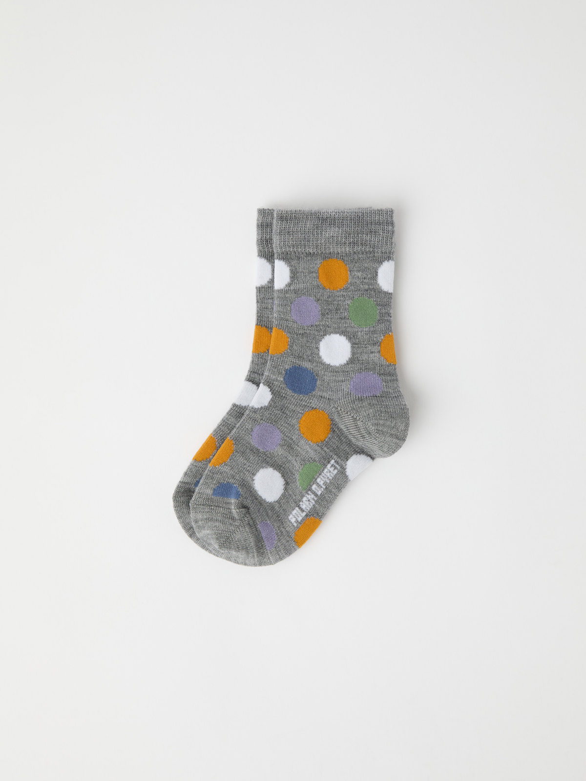 Ett par prickiga strumpor i tunn merinoull som värmer gott och är mjuka för små fötter. Storleken är markerad på insidan av skaftet. Där finns också plats att skriva barnets namn. Lätt att hålla ordning!