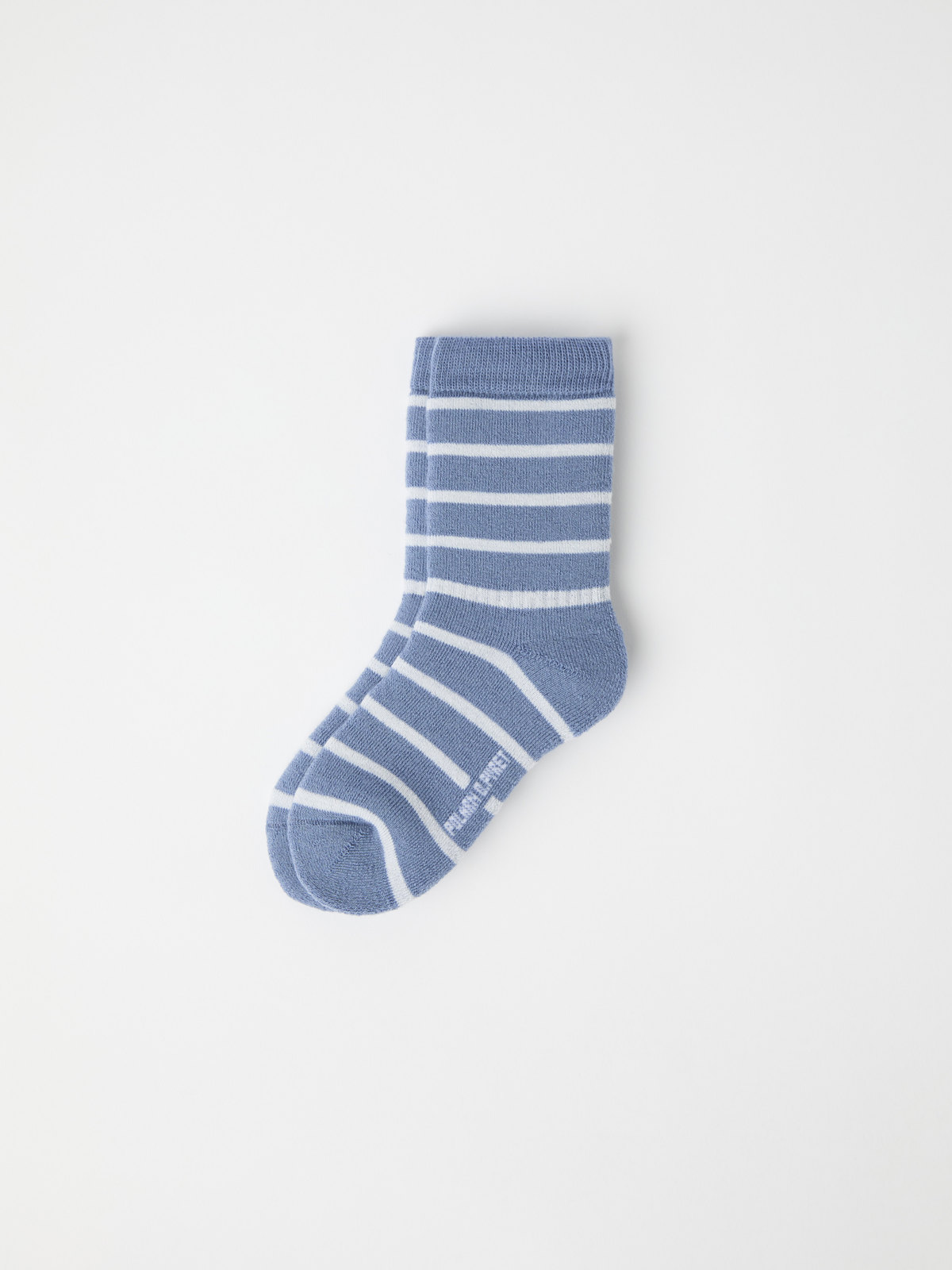 Ett par randiga strumpor i mjuk ullfrotté som värmer gott i kylan. Strumporna har vår klassiska rand och storleken är markerad på insidan av skaftet. Där finns även plats att skriva barnets namn. Lätt att hålla ordning!