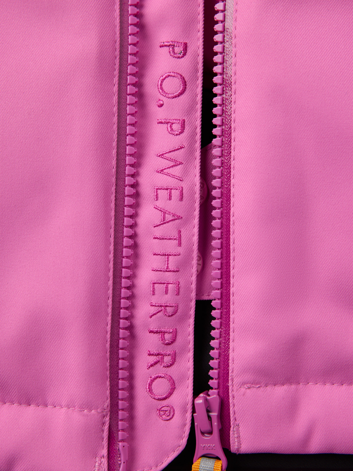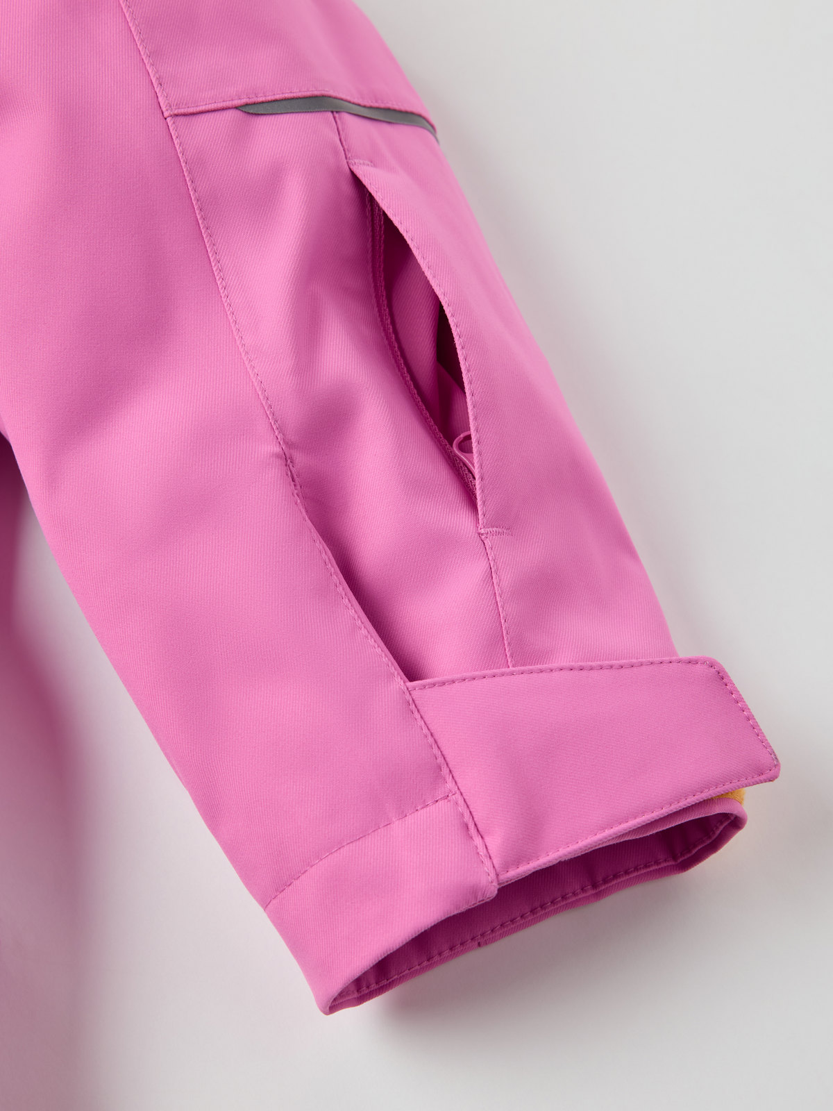 Plagget är tillverkat i vattentätt material med minst 10 000 vattenpelare – det betyder att ditt barn kan vara ute i spöregn utan problem.