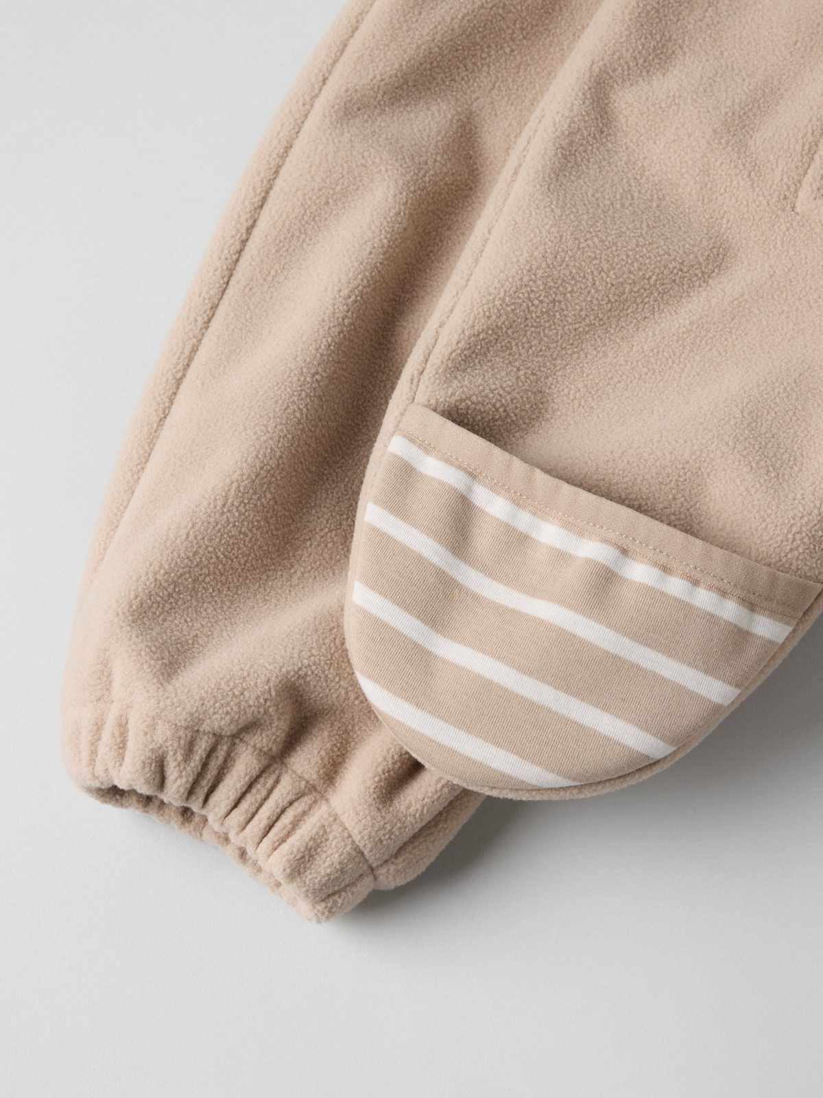 Overallen har dessutom rundade ärm- och benslut med övervikbart tyg som ger skön värme små händer och fötter.