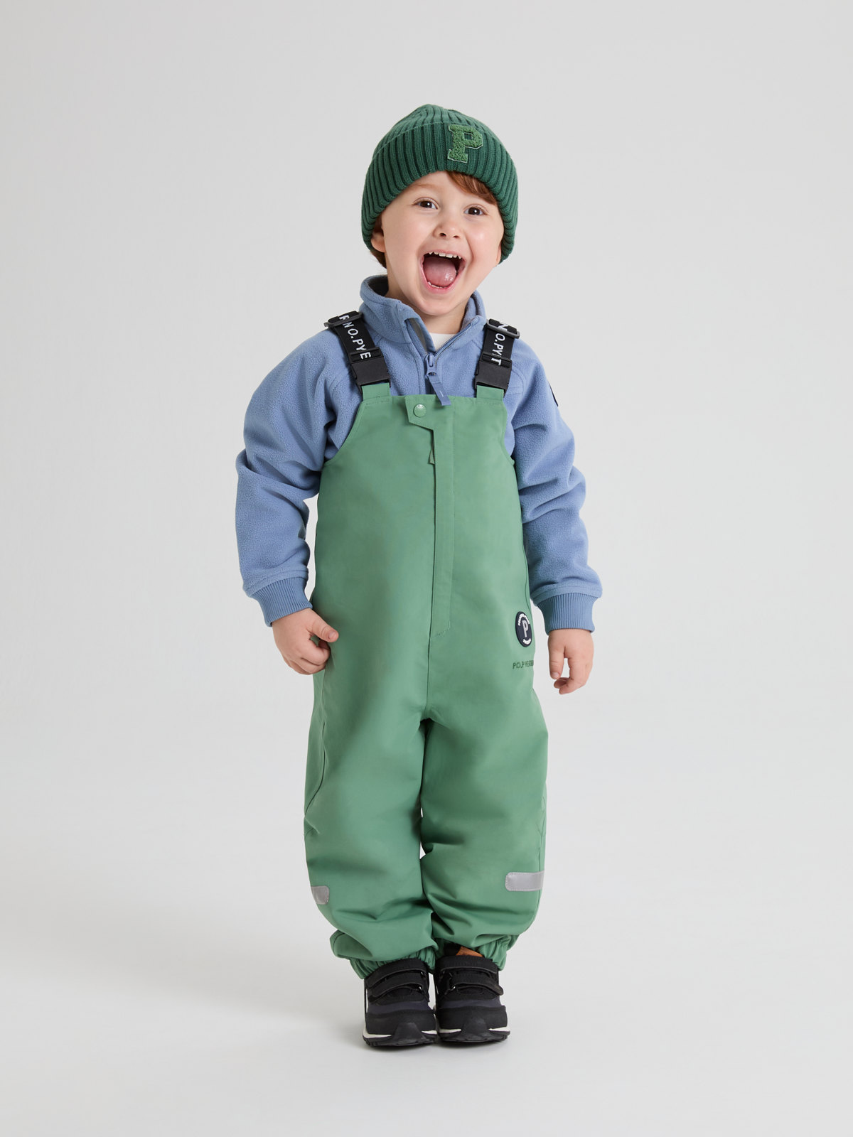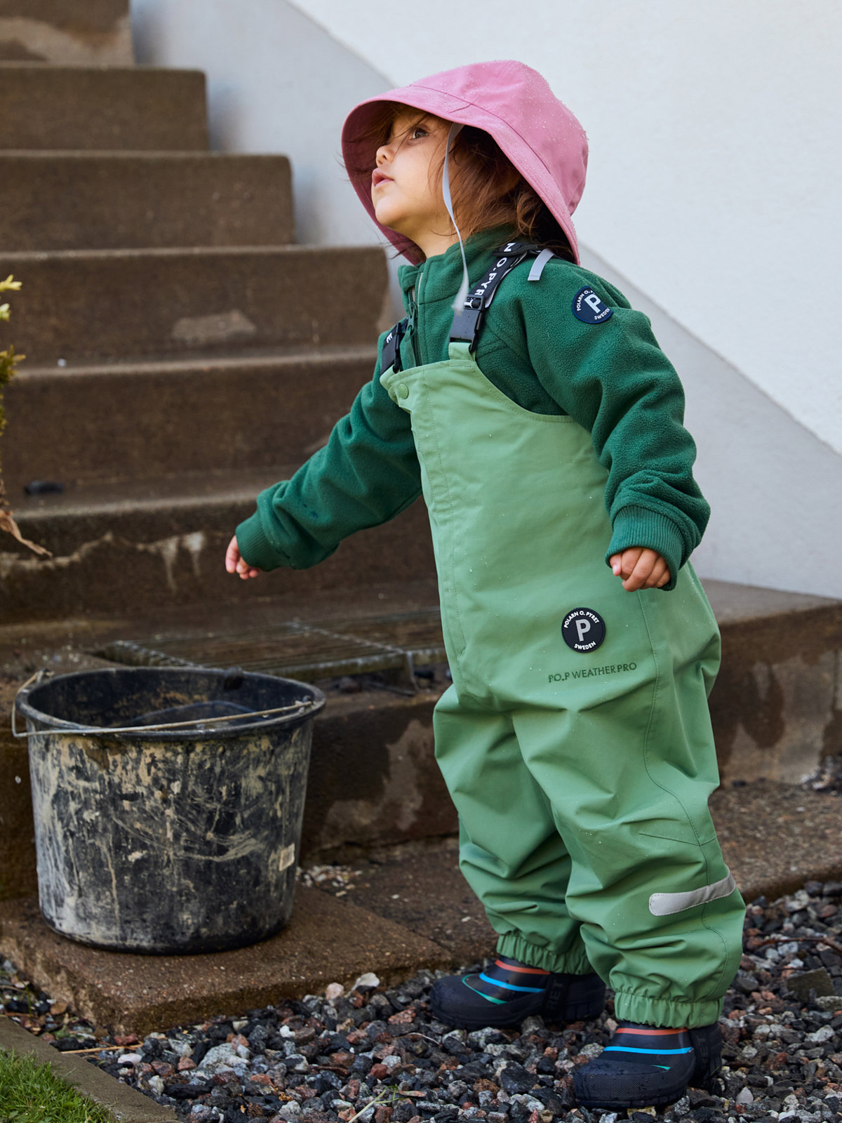 Ytterkläder märkta PO.P WeatherPro® uppfyller alla våra krav för funktionsytterplagg, oavsett om det gäller slitstyrka, vattentäthet, andningsförmåga eller barnsäkerhet.