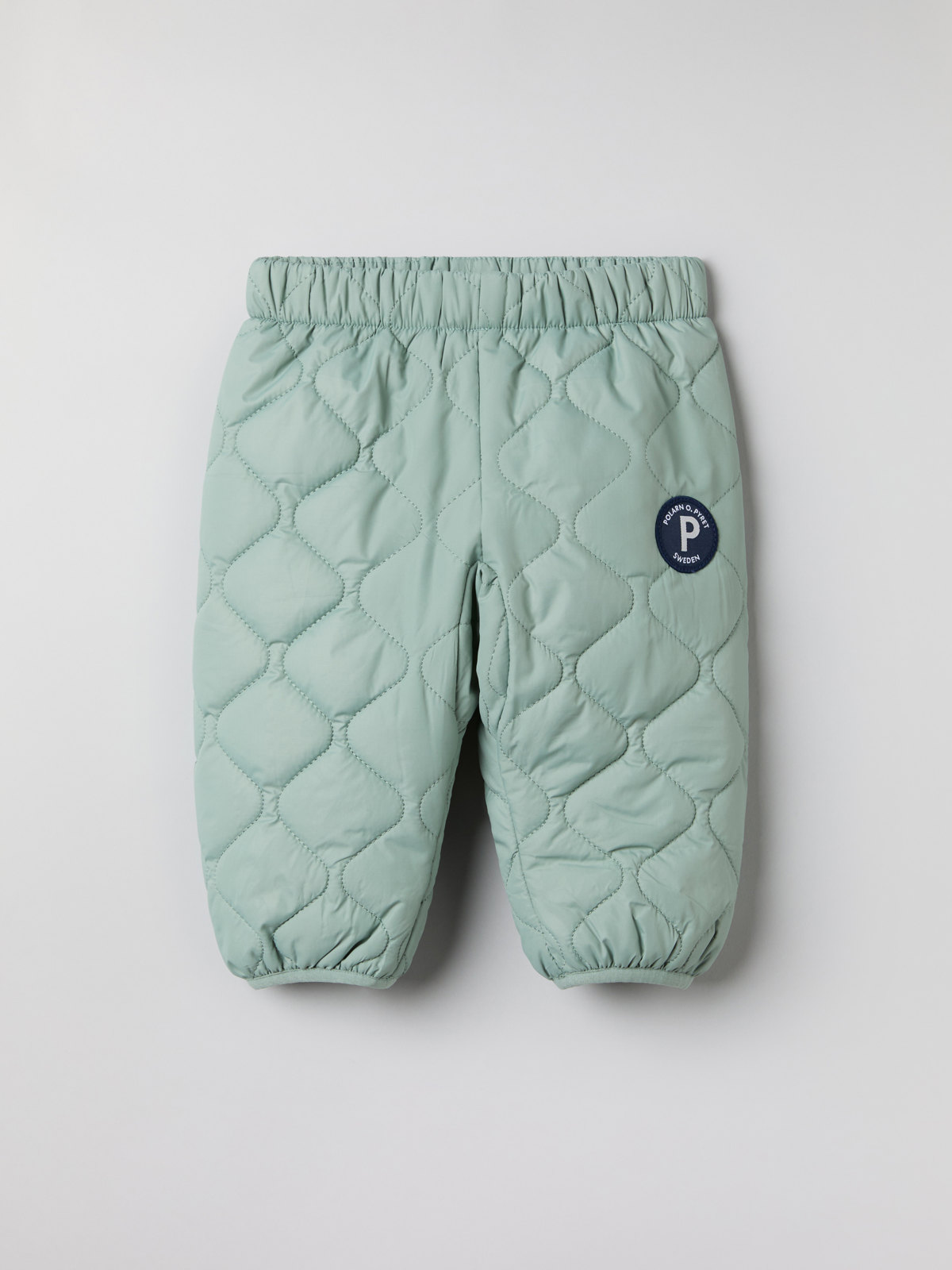 Vindtät och vattenavvisande quiltad termobyxa med tunn vaddering för baby – skön i både vagn och famn!