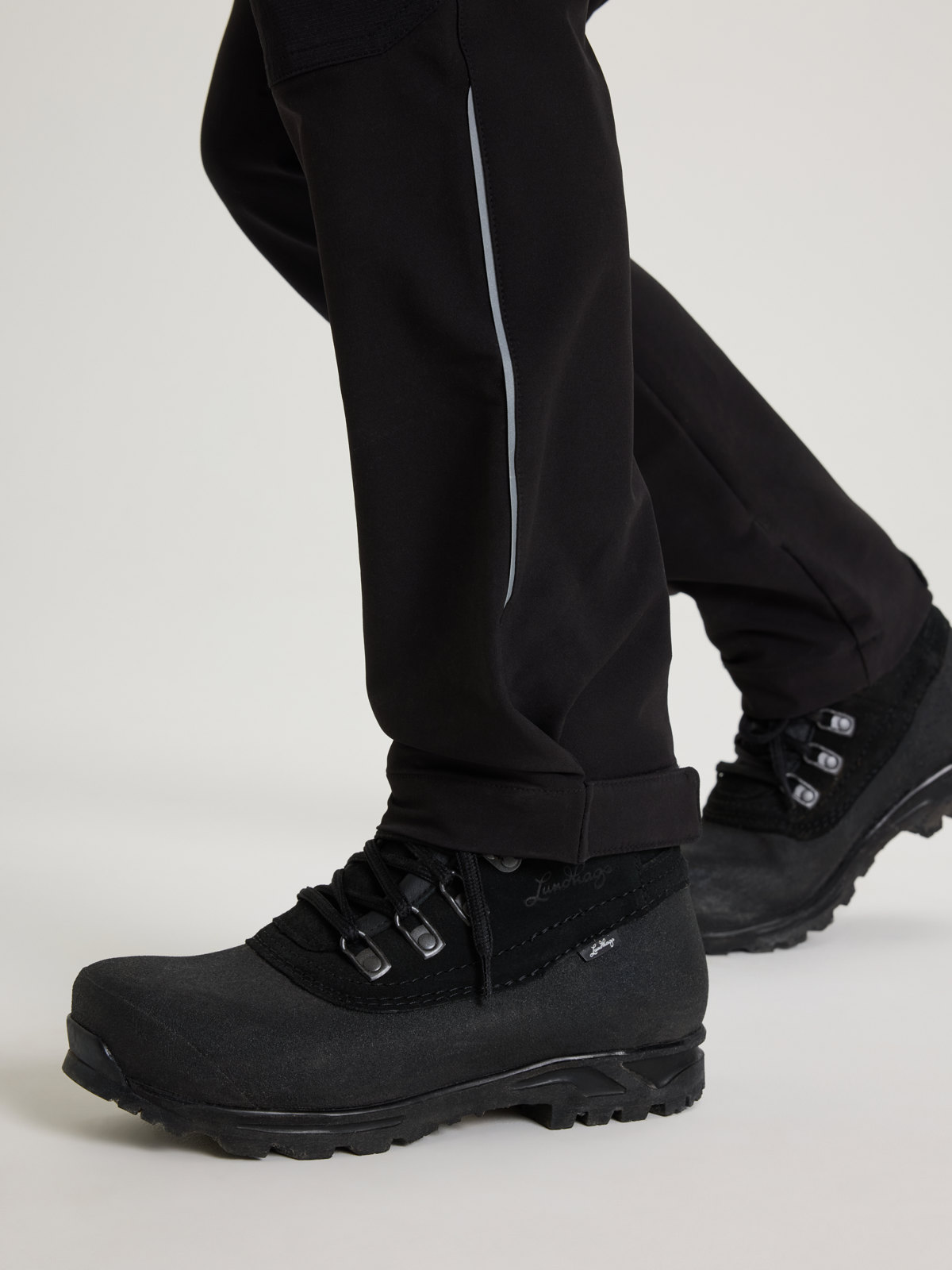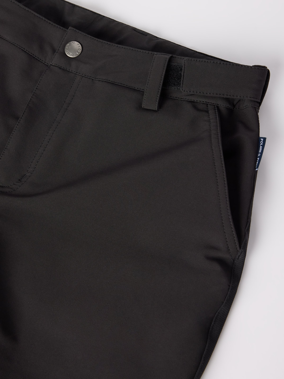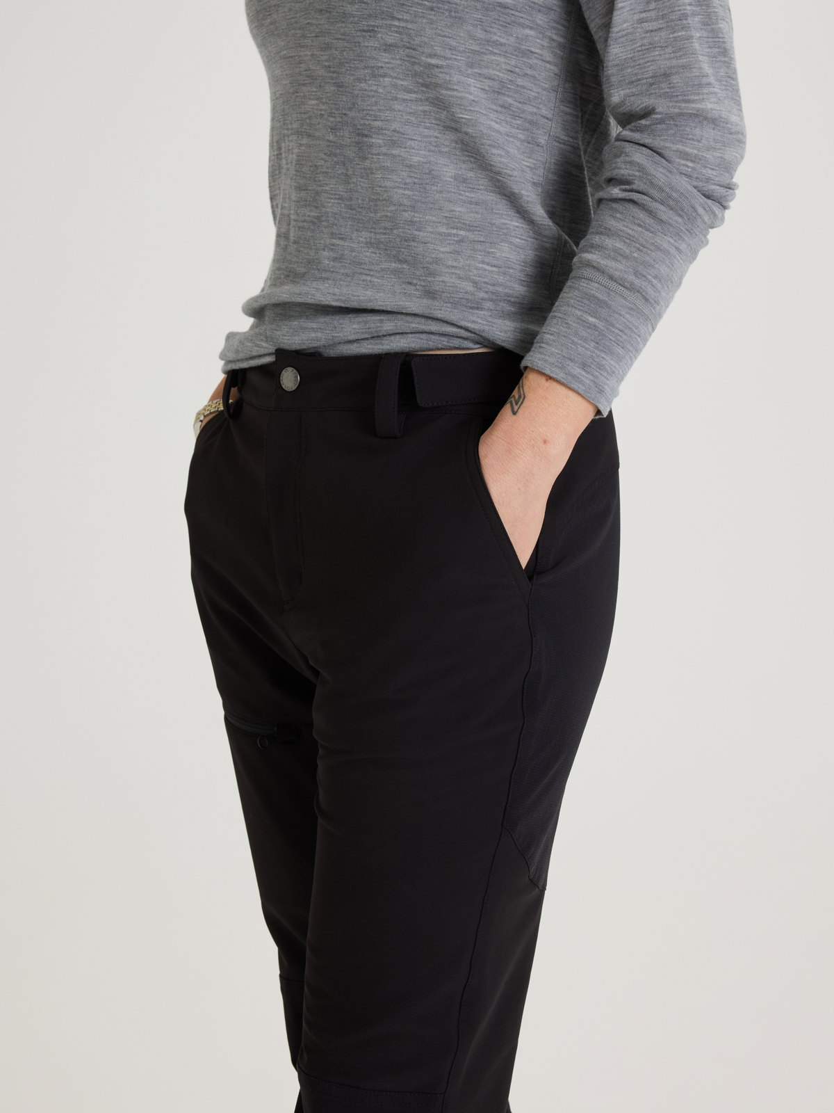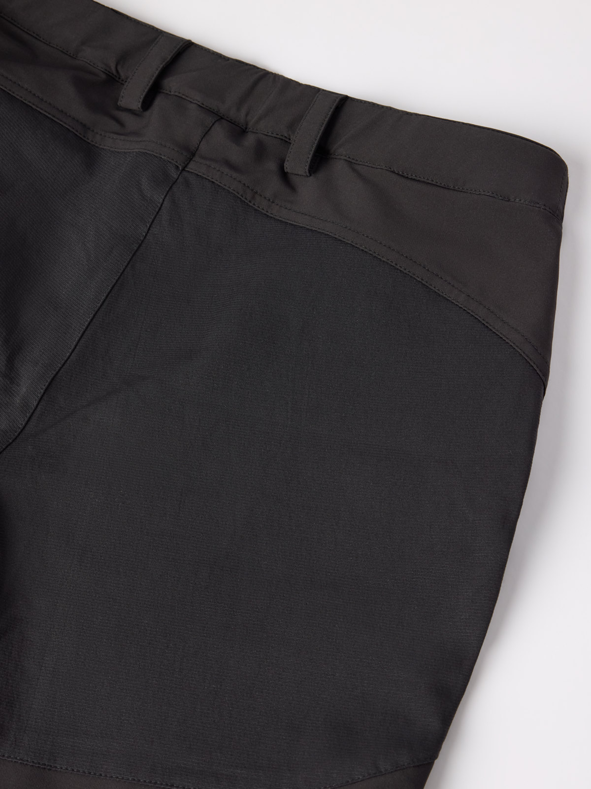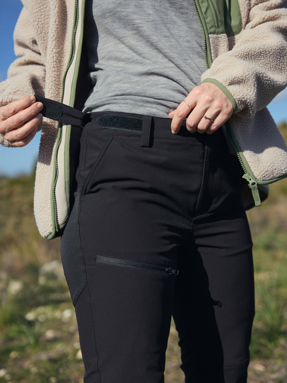 Benslut och midja justeras med kardborreknäppning. I midjan finns även hällor för skärp.