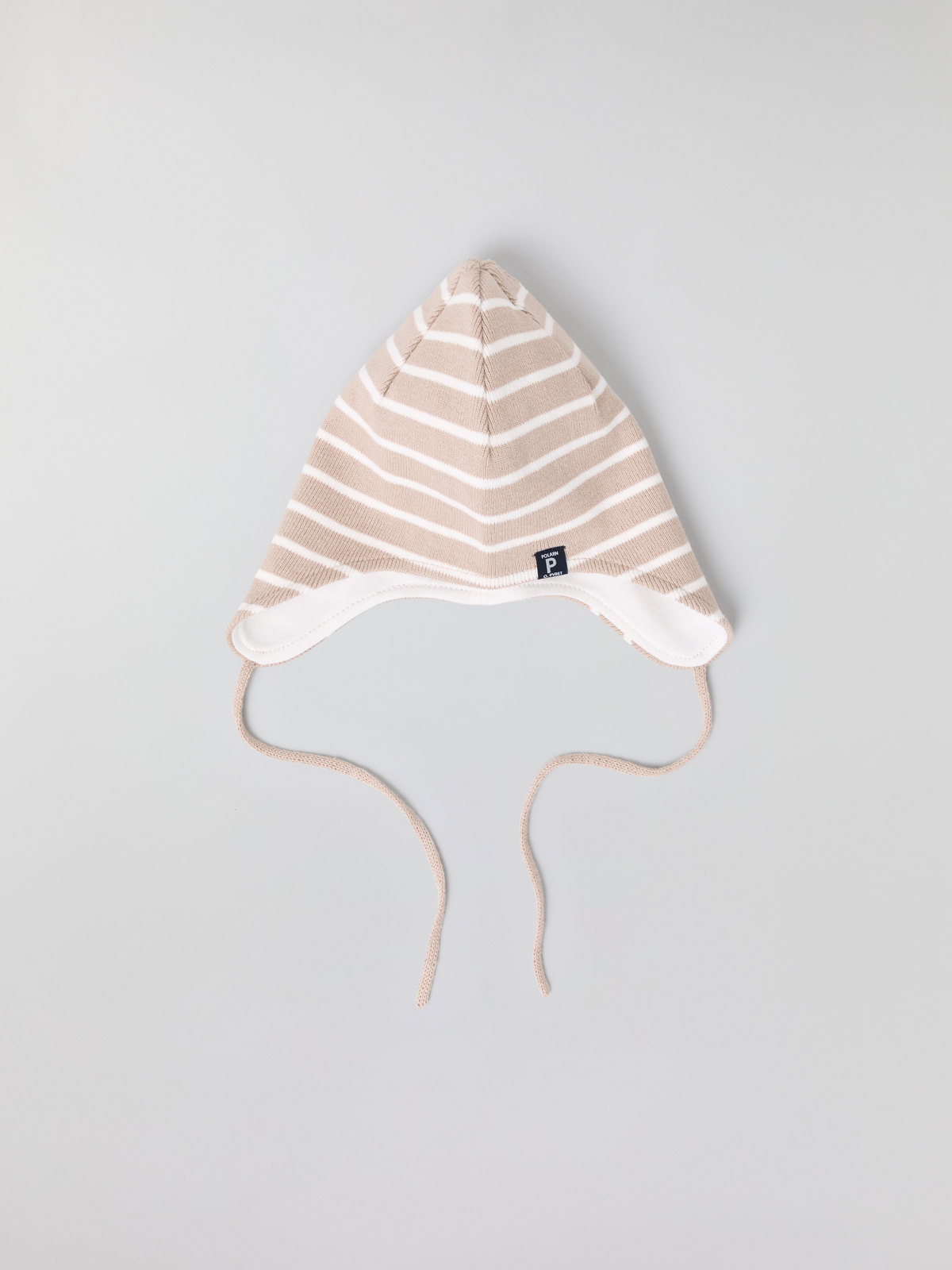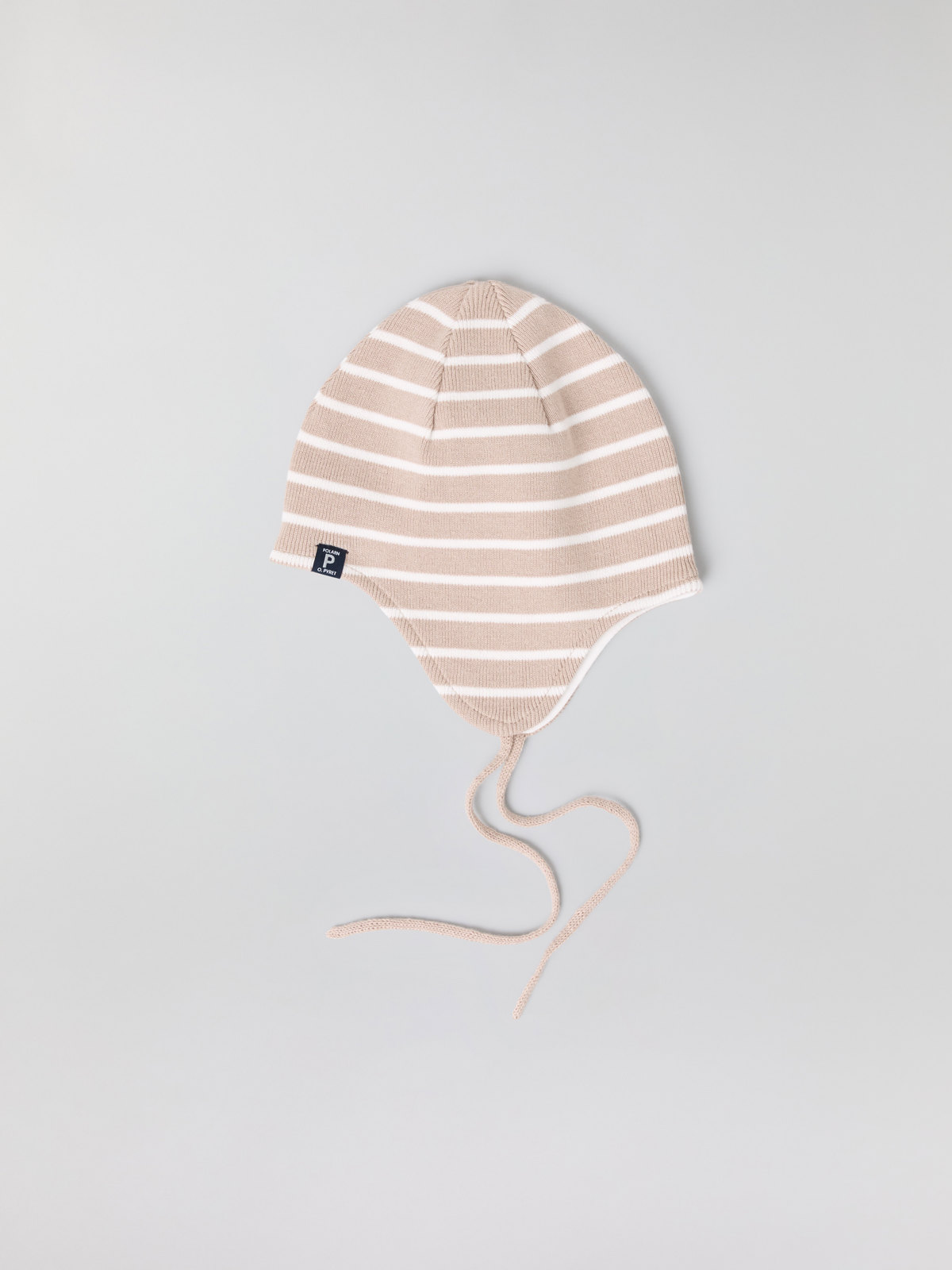 Mössan har vår klassiska rand och går ned skönt över öronen. Det mjuka knytbandet håller mössan på plats.