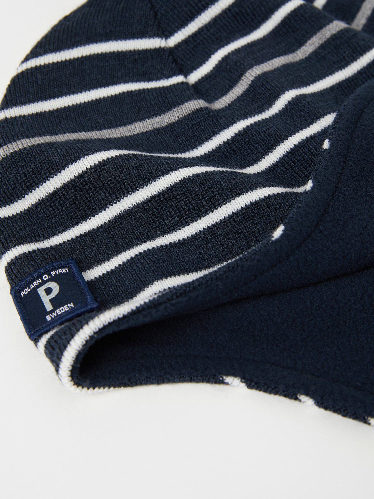 Randig hjälmmössa i värmande ullmix. Mössan är vindtät och går ned ordentligt över öronen. Den har även ett mjukt fleecefoder och är försedd med en reflexrand som syns bra i mörker. Knytbanden under hakan håller mössan på plats. Storlek 52/54 har inga knytband. Ull håller värmen även i blött tillstånd.