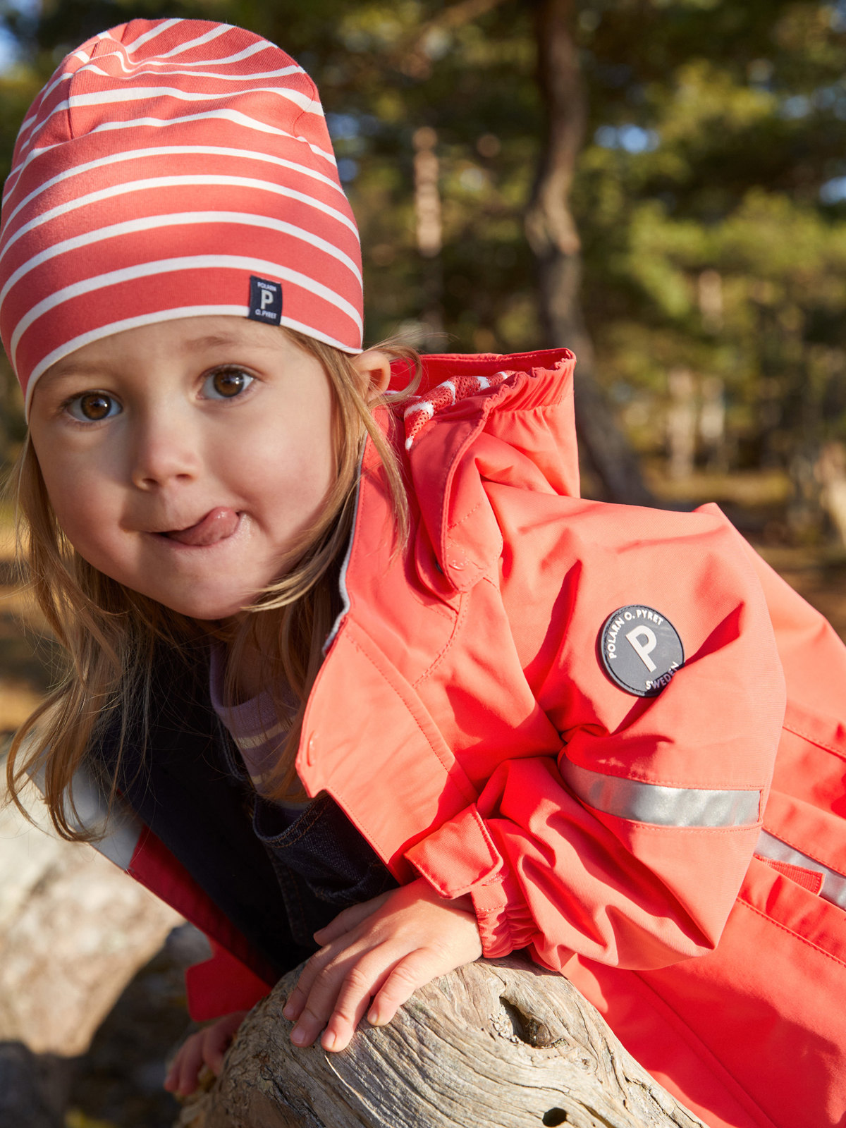 Det bästa vi alla kan göra för att spara på jordens resurser är att använda våra kläder längre. Så länge det bara går. Ta hand om dem ordentligt. Och laga dem när de går sönder. Allt det vill vi hjälpa dig med. Så vi kommer fortsätta att designa kläder av hög kvalitet som kan användas, slitas och älskas länge. Kläder som, när de blivit för små, kan ges vidare till nästa barn. Och nästa. Det är hållbarhet för oss.